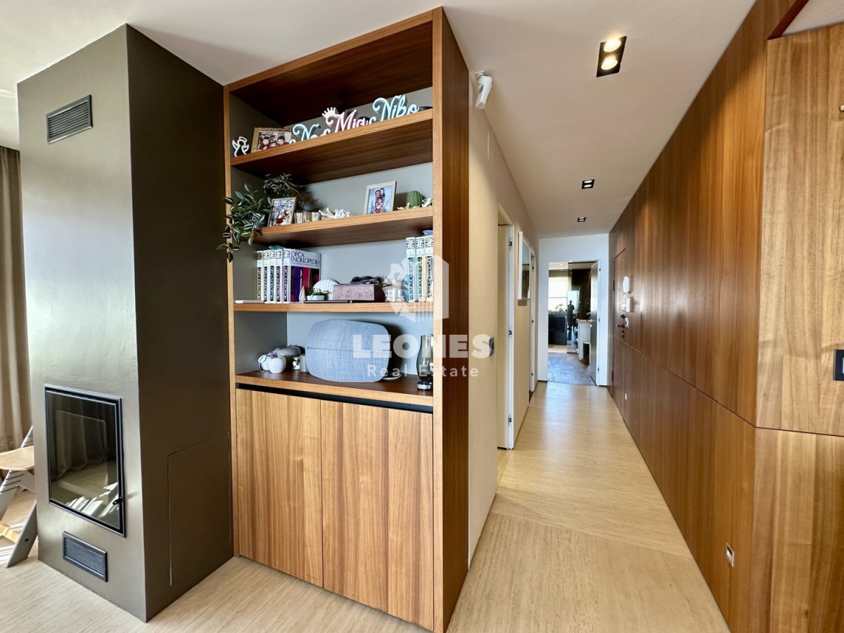 Die Küche ist modern mit hochwertiger Kerlit-Keramik von Cottod'Este (100 x 100 cm bis 100 x 300 cm) ausgestattet und erstreckt sich bis ins Wohnzimmer, wodurch ein einzigartiger und luxuriöser Look entsteht. Die Zimmer sind mit amerikanischem Nussbaumparkett ausgestattet.