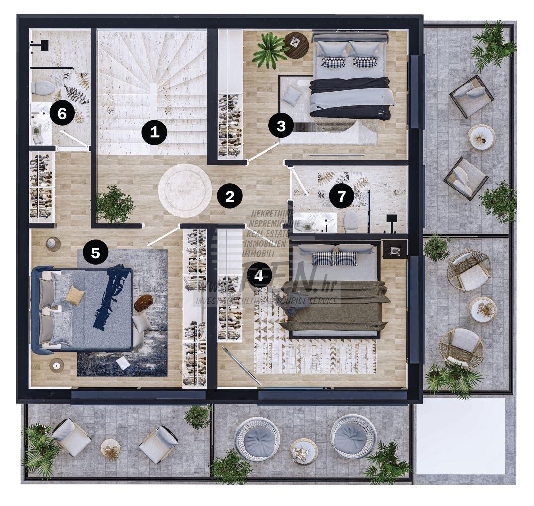 Das Haus verfügt über insgesamt 249,23 m2, Garten 320 m2, ist 5 Min. (100m) vom Meer und vom schönen Naturstrände, 10 min. (6000m) entfernt sind Sie vom Zentrum von Umag. Das Haus ist Doppelhaushälfte und hat Erdgeschoss und erste Stock. Im Bau. Es gibt 3 Schlafzimmer, 3 Bader, Wohnzimmer, Küche, Depot. Das Haus ist ausgestattet mit 2 Parkplatz, 2 Terrasse mit Meer Blick, Kamin, Klimaanlagen, Schwimmbad, luxuriös ausgestattet. In privaten Resort mit Rezeption, Möglichkeit zur gemeinsamen Nutzung von Fitnessstudio, Wellness, Kinderspielplatz, Weinbar, 24-Stunden-Betreuung, Ladestation für Elektroautos, Wartungspakete für die Anlage verfügbar.