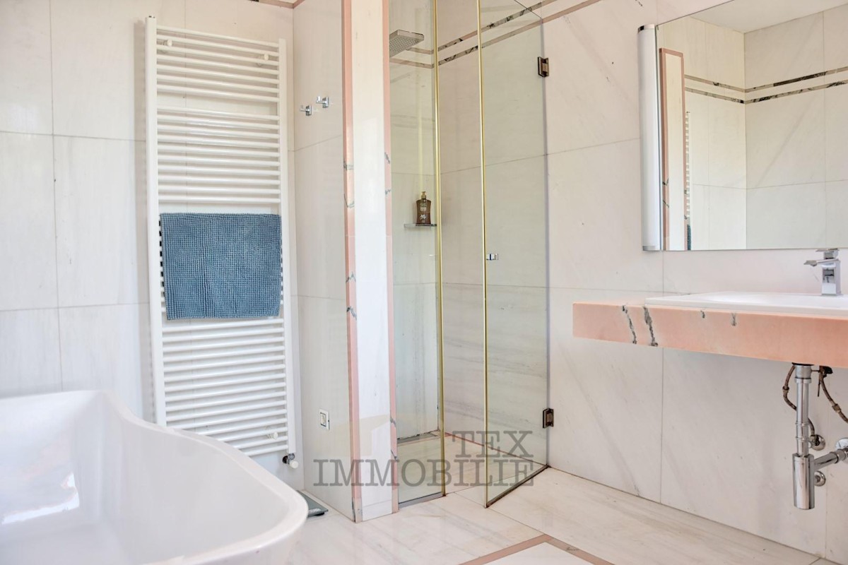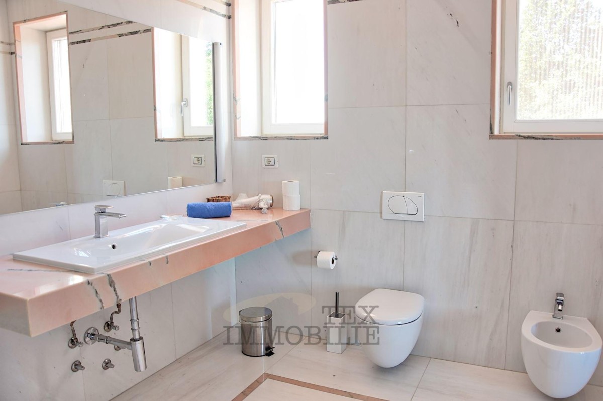 In einer ruhigen und idyllischen Umgebung, nur 20 km von Poreč und den ersten Stränden entfernt, befindet sich diese elegante Villa, die höchsten Komfort und Privatsphäre bietet.