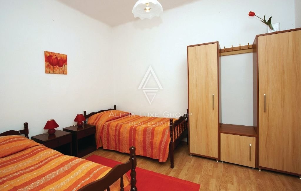 Auf einem 408 m² großen Grundstück bietet der sorgfältig angelegte Garten funktional aufgeteilte Bereiche, darunter einen erfrischenden 18 m² großen Swimmingpool, eine Grillzone, einen Maschinenraum und eine Außentoilette. Der Garten verfügt auch über eine 19 m² große Garage, die mit Wasser und Strom ausgestattet ist und als Taverne oder zusätzlicher Wohnraum dient. Das Anwesen bietet ausreichend Parkmöglichkeiten und eine üppig grüne Fläche, die eine perfekte Außenwohnumgebung schafft.