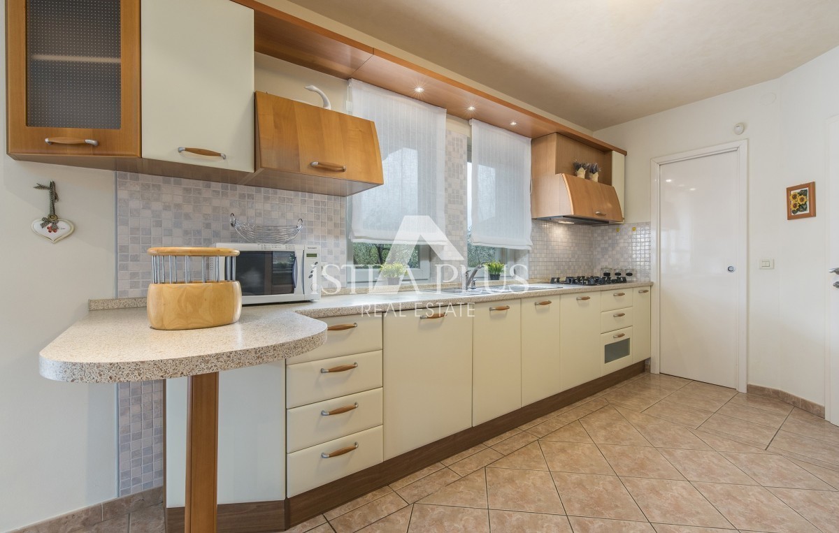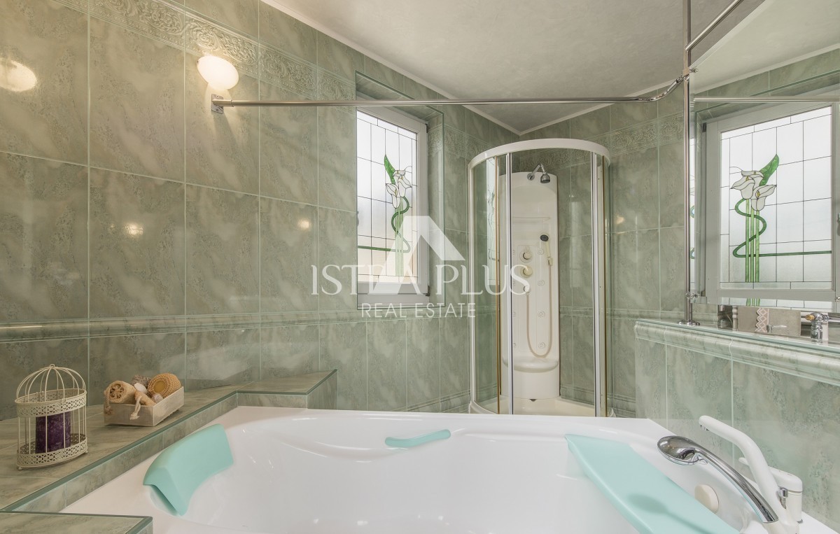 Eine wunderschöne Villa in Poreč, in einem ruhigen Dorf inmitten der Natur, 1 km vom Meer entfernt. Fläche 420m2, verteilt auf drei Etagen. Im Keller des Hauses finden Sie etwas Besonderes und Wertvolles: eine traditionelle istrische Taverne mit einer kleinen Steinbar, ein großes Esszimmer mit Kamin, eine ausgestattete Küche, eine Toilette und einen gläsernen Weinkeller. Die Taverne ist mit dem Rest des Hauses verbunden, sodass die Treppe in das Erdgeschoss des Hauses führt. Es besteht aus zwei Schlafzimmern und zwei Badezimmern mit Duschen, einem geräumigen Wohnzimmer mit Kamin, das Zugang zum Wintergarten und zum Hof des Hauses hat, darunter befindet sich ein Esszimmer und eine Küche mit Abstellraum. Im ersten Stock befinden sich drei weitere Schlafzimmer, eines davon mit Zugang zum Balkon, das über ein eigenes luxuriöses Badezimmer mit Badewanne und Dusche sowie einen begehbaren Kleiderschrank verfügt. Im Flur der ersten Etage befindet sich ein zusätzliches Wohnzimmer, das als Arbeitsraum, Mini-Fitnessraum usw. genutzt werden kann und über einen Zugang zum Balkon verfügt. Am Eingang zum zweiten Badezimmer befindet sich ein komplett mit Einbauschränken ausgestatteter Raum, der zusätzlichen Platz für alles Notwendige schafft. Alle Zimmer und Schlafzimmer sind klimatisiert und werden mit Ölradiatoren beheizt. Der Abstellraum befindet sich im Keller des Hauses. Das Haus wird komplett möbliert und ausgestattet verkauft. Das Erdgeschoss führt zu einer großen überdachten Terrasse, einem Garten von ca. 1250m², einer Liegewiese und einem schönen Pool von 77 m².