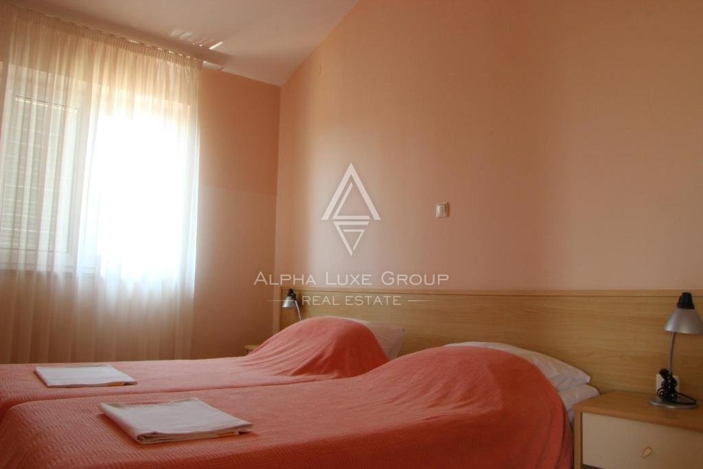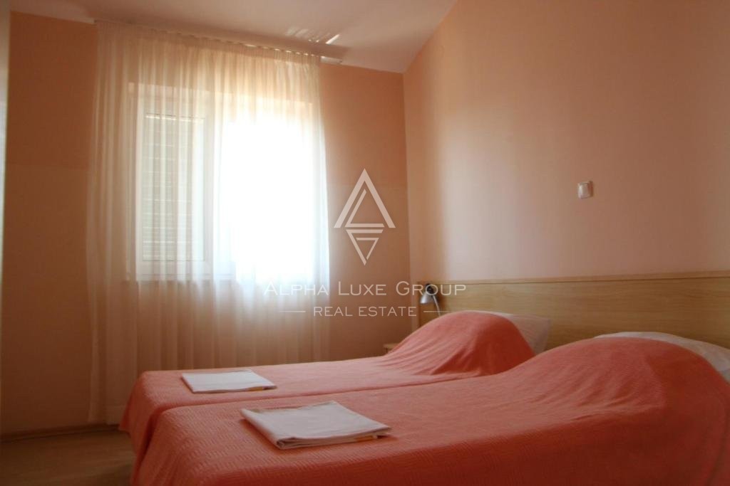 Das Anwesen erstreckt sich über drei Etagen, einschließlich Keller, Erdgeschoss, erstes und zweites Obergeschoss. Der Wohnraum in jedem Apartment integriert nahtlos das Wohnzimmer, die Küche und den Essbereich, ergänzt durch 2 Schlafzimmer, ein Badezimmer und eine Terrasse. Sechs Apartments bieten Terrassen mit Meerblick, während andere einen Blick auf die malerische Landschaft bieten. Die Villa umfasst auch 13 Parkplätze, die den Komfort der Gäste gewährleisten.