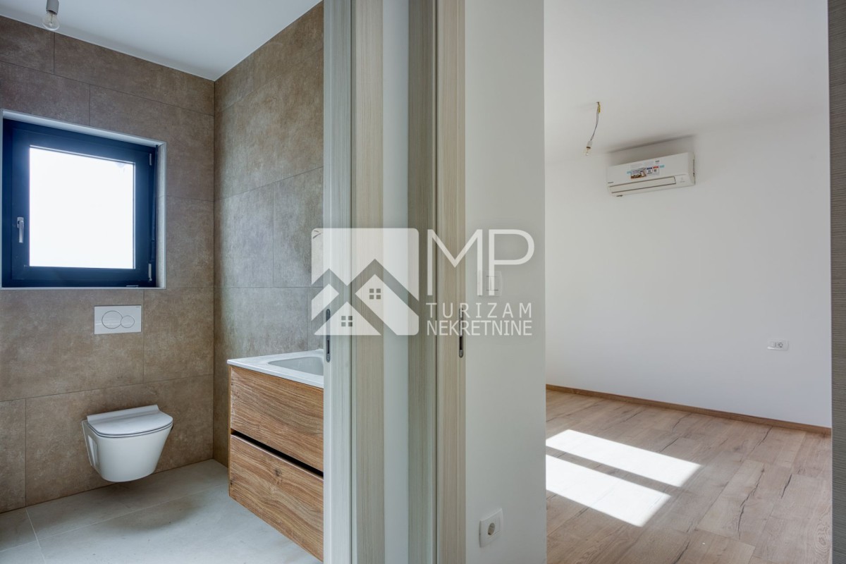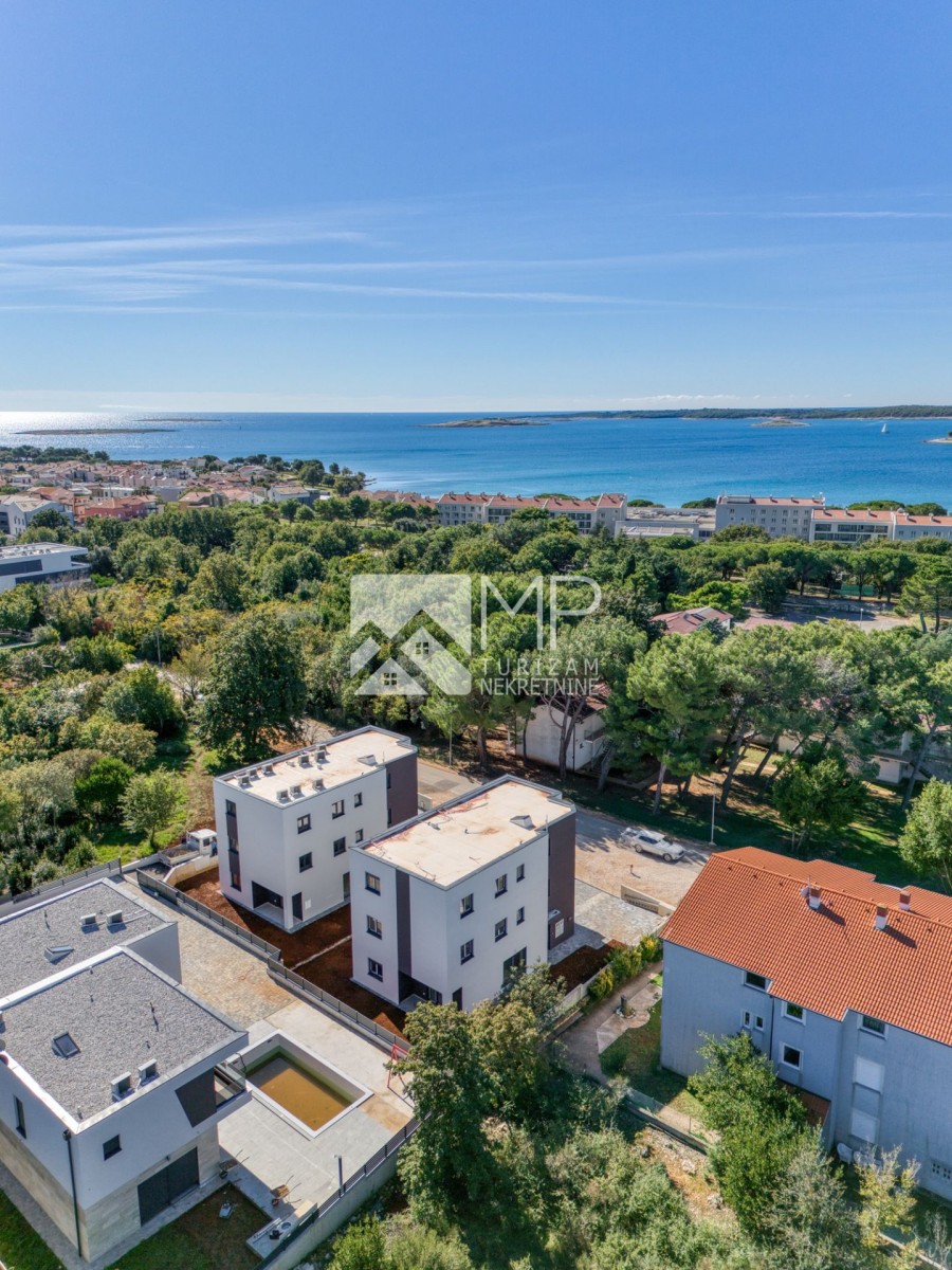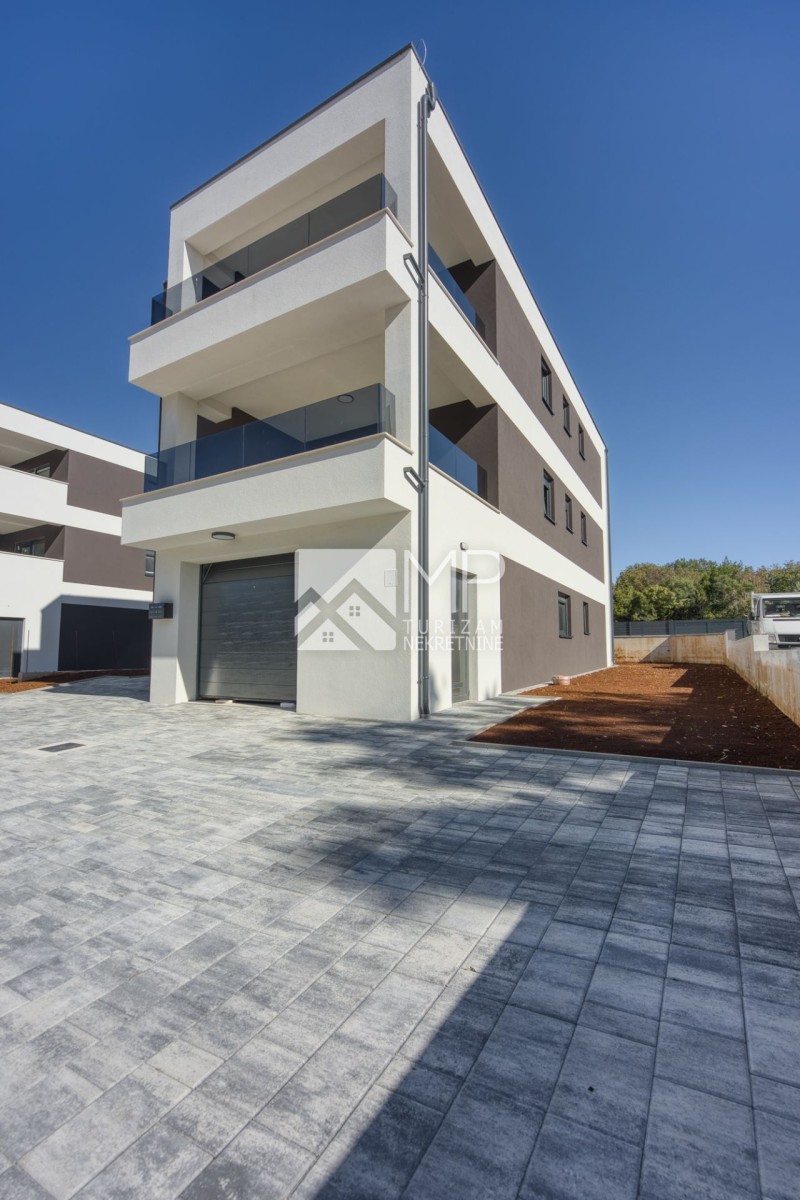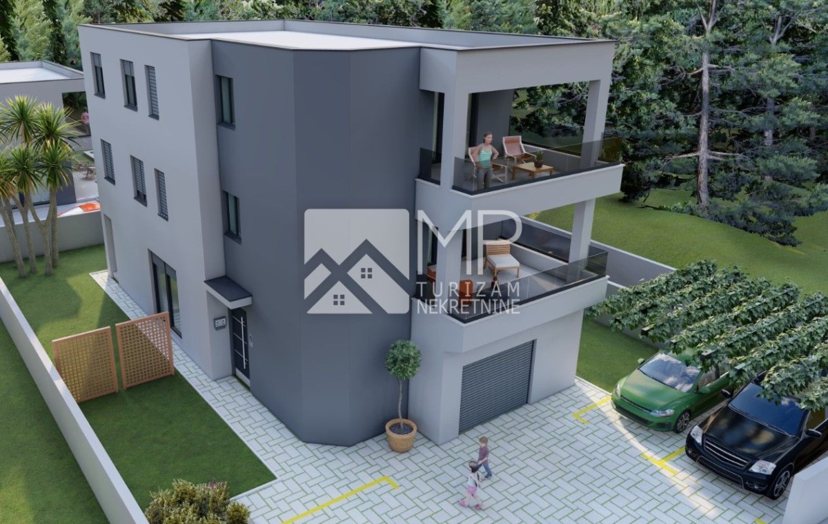 Medulin – ein moderner Neubau, aufgeteilt in drei Etagen (Erdgeschoss, 1. und 2. Obergeschoss) mit insgesamt drei Wohneinheiten, also jeweils einer Wohnung pro Etage.