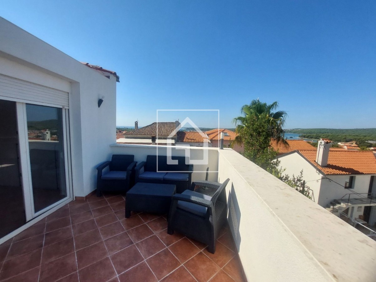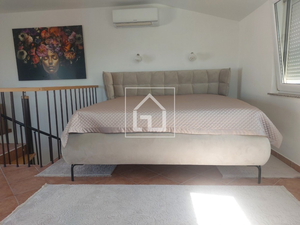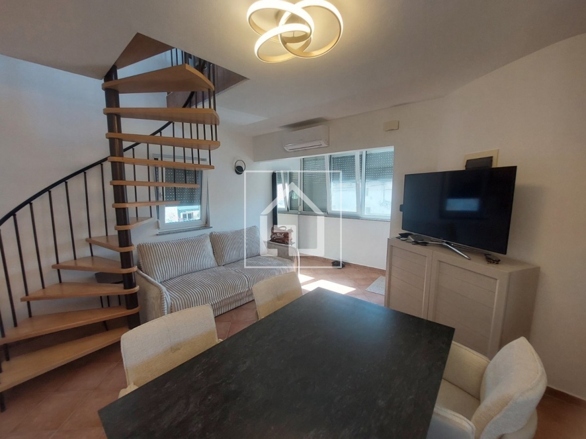 Es besteht aus zwei separaten, eingetragenen Wohneinheiten. Die erste Einheit ist ein Einzimmer-Apartment im Erdgeschoss, bestehend aus Wohnzimmer mit Küche, Badezimmer und Schlafzimmer. Die zweite Einheit ist eine großzügige Wohnung, die sich über drei Etagen erstreckt. Im ersten Stock befinden sich Wohnzimmer mit Küche, Badezimmer und Schlafzimmer. Im zweiten Stock gibt es ein großes Schlafzimmer sowie eine Terrasse mit wunderschönem Meerblick. Die dritte Etage bietet eine große Terrasse mit Panoramablick auf das Meer.