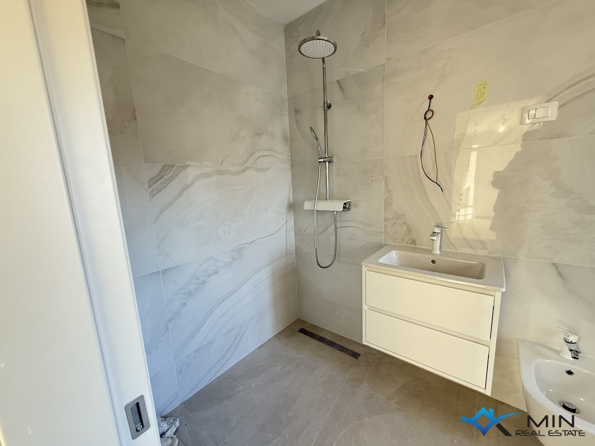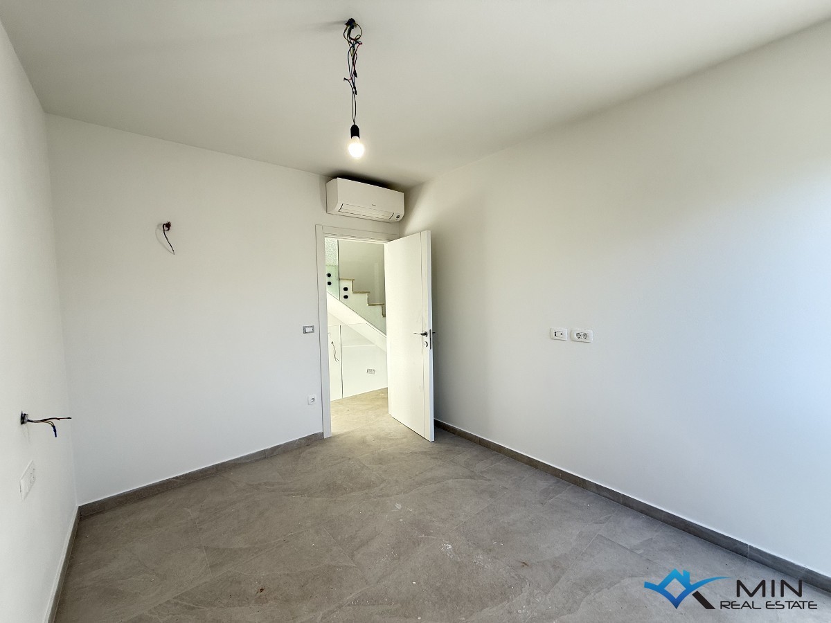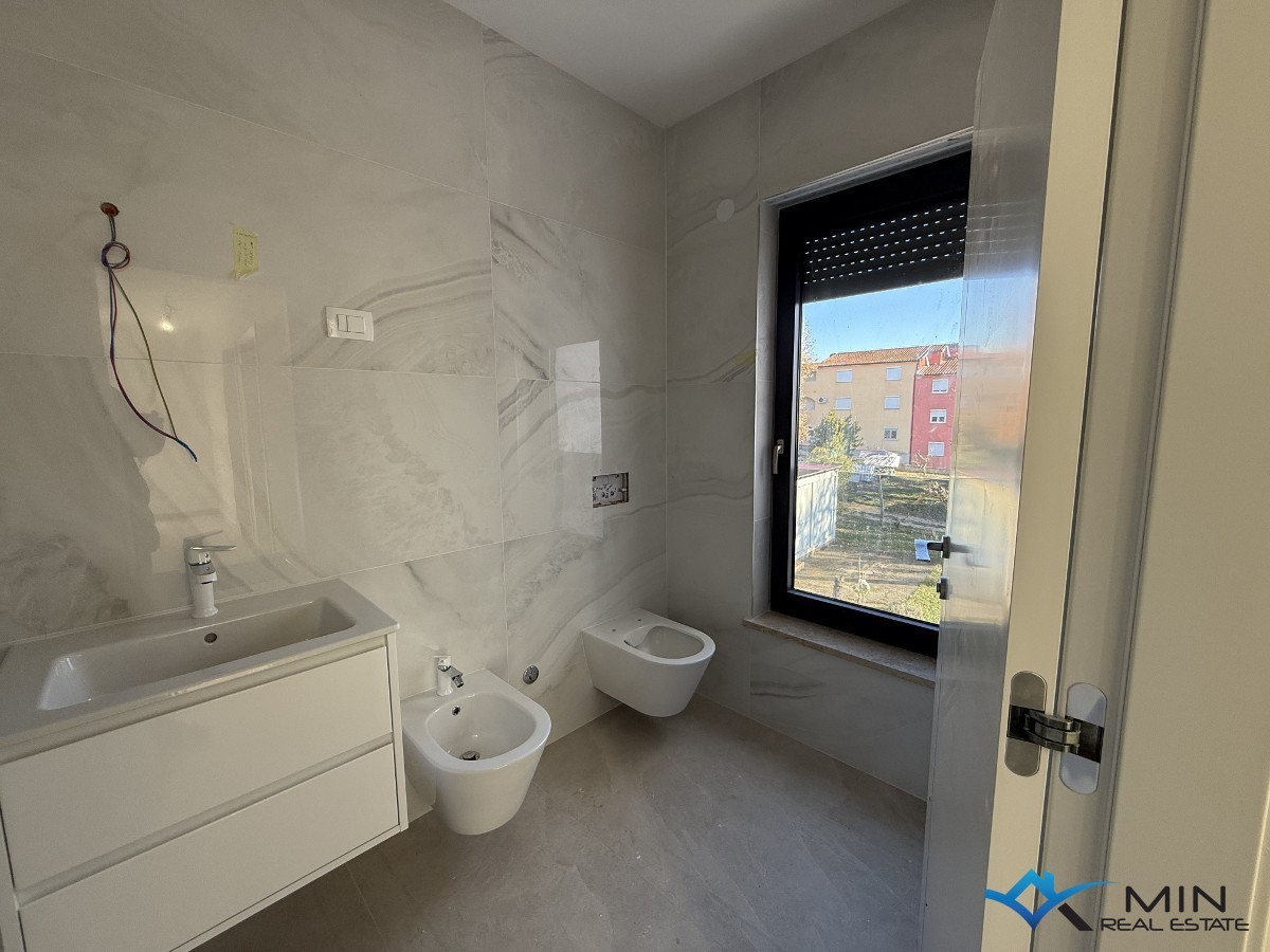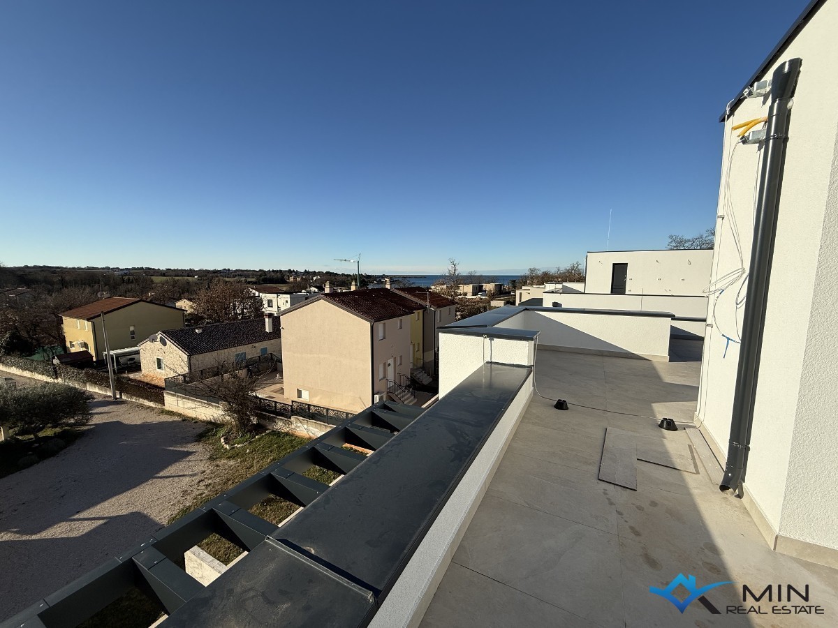 Gelegenheit zum Kauf eines modernen Hauses, das nur 300 Meter vom Meer entfernt liegt, in unmittelbarer Nähe von Novigrad. Dieses elegante Haus bietet ein anspruchsvolles Design und Komfort, perfekt für eine Familie oder als Ferienhaus. Das Erdgeschoss besteht aus einem Eingangsbereich, einem WC, einem offenen Bereich (ein großer offener Raum, der die Küche, das Esszimmer und das Wohnzimmer umfasst), einer überdachten Terrasse (vom Wohnzimmer aus gelangt man zu einer überdachten Terrasse, die den perfekten Raum zum Entspannen bietet) und einem Garten mit vorbereiteten Installationen für eine Sommerküche. Im ersten Stock befinden sich drei Schlafzimmer (das Hauptschlafzimmer hat ein eigenes Badezimmer und eine Terrasse, während die anderen beiden Schlafzimmer sich ein Badezimmer teilen). Im obersten Stockwerk befindet sich eine Terrasse mit einem fantastischen Meerblick. Auf der Terrasse sind Installationen für Strom, Wasser und Abfluss vorbereitet. Das Haus verfügt über zwei Parkplätze und einen Garten von etwa 220 m². Entfernungen: Der erste ausgestattete Strand ist etwa 500 Meter entfernt, und ein Geschäft, eine Bar oder ein Restaurant sind nur 200-250 Meter entfernt.