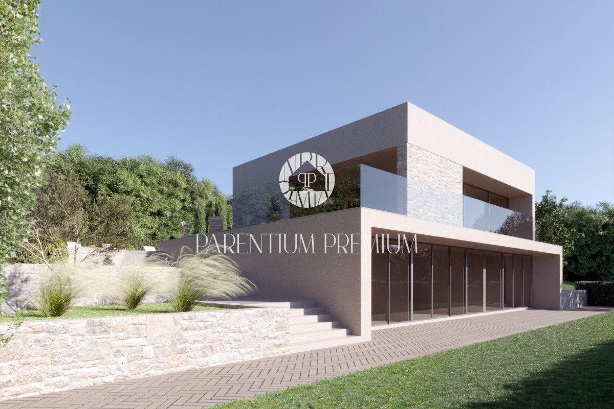 Moderner Neubau im Herzen Istriens, in Trviž, 11 km von Pazin entfernt, ökologisch ausgestattet mit eigener Stromquelle aus Sonnenkollektoren und elektrischer Fußbodenheizung.
