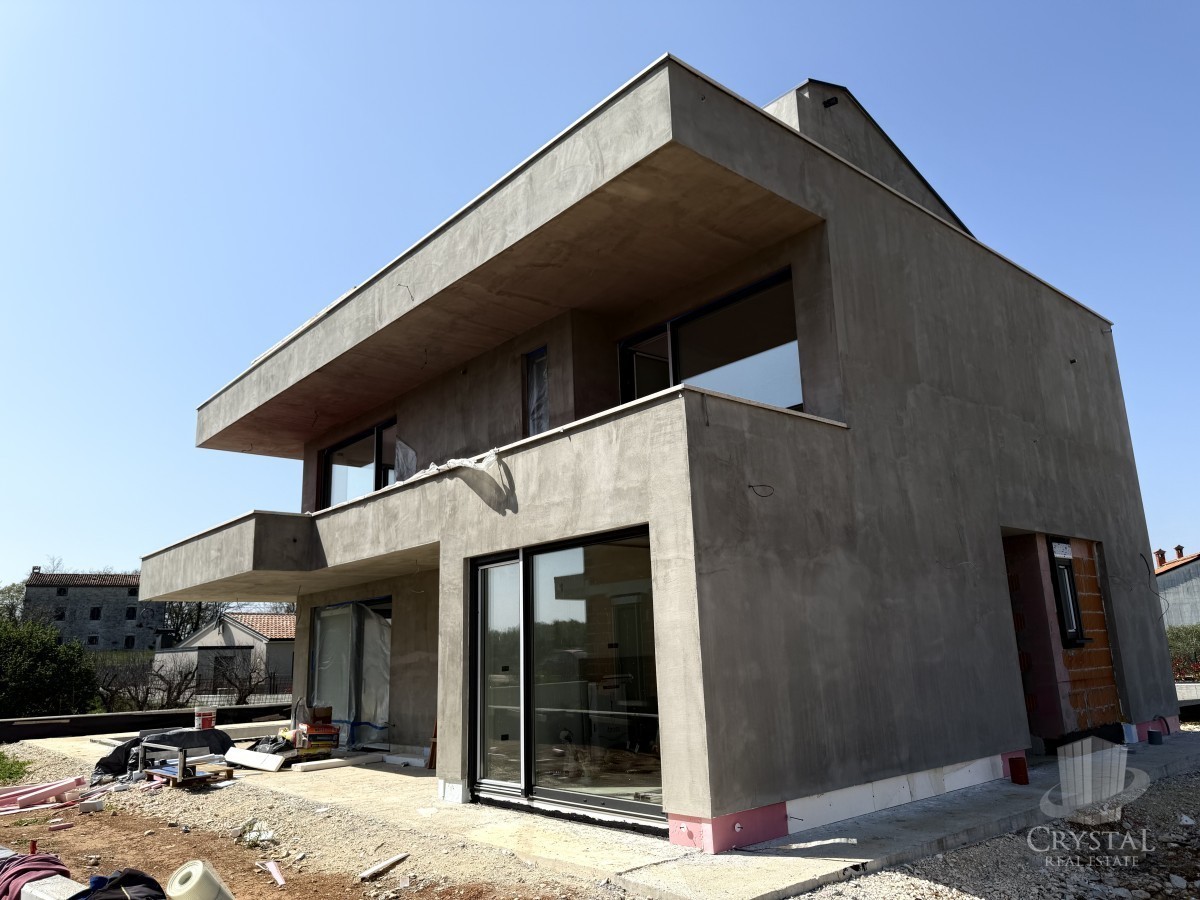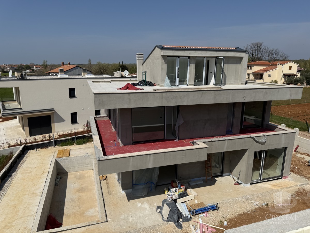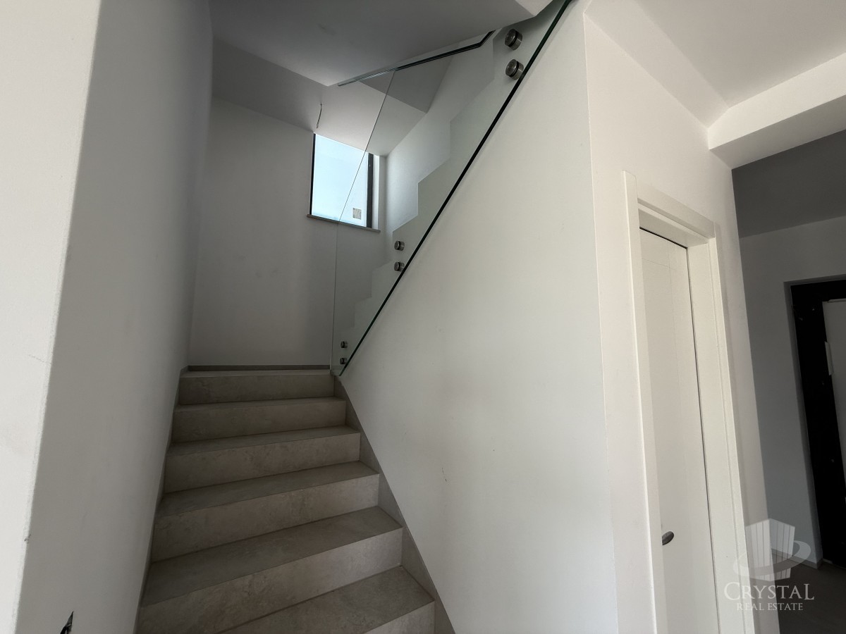 Zum Verkauf steht ein modernes, neu gebautes Haus mit einer Gesamtbruttofläche von 326 m2 auf einem Grundstück von 571 m2. Im Erdgeschoss des Hauses befinden sich ein Eingangsbereich, ein offenes Wohnzimmer mit Küche und Esszimmer mit Zugang zur Terrasse, zum Garten und zum 32 m² großen Swimmingpool, ein Technikraum, ein Abstellraum, eine Toilette und ein Wellnessraum, der in ein zusätzliches Schlafzimmer umgewandelt werden kann. Im ersten Stock befinden sich drei Schlafzimmer, jedes mit eigenem Bad und einer überdachten Terrasse. Im zweiten Stock gibt es ein Badezimmer mit Sauna, zwei Abstellräume, einen zusätzlichen Raum, der als Sommerküche dienen kann, und eine große, nicht überdachte Terrasse von 77 m2, die einen wunderschönen Blick in die Natur bietet. Im gesamten Haus ist eine Fußbodenheizung und Klimaanlage installiert – je nach Vereinbarung über Wärmepumpe oder elektrisch. Zum Objekt gehören 2 Parkplätze. Isolierung aus 10 cm Styropor, Aluminium- und PVC-Tischlerei, Jalousien an den Fenstern, Heizleitern in den Badezimmern und der erste Bauabschnitt für die Sauna.