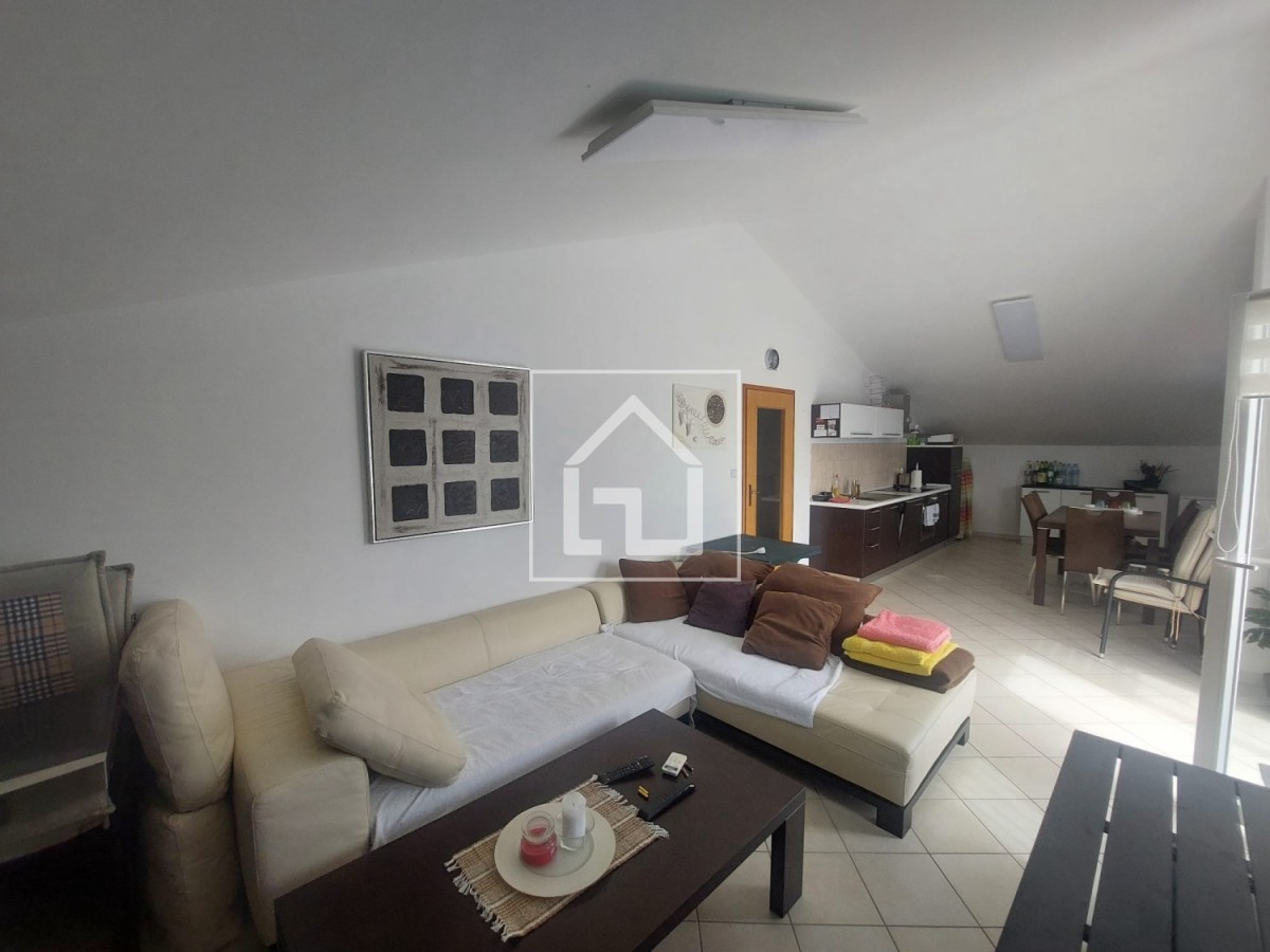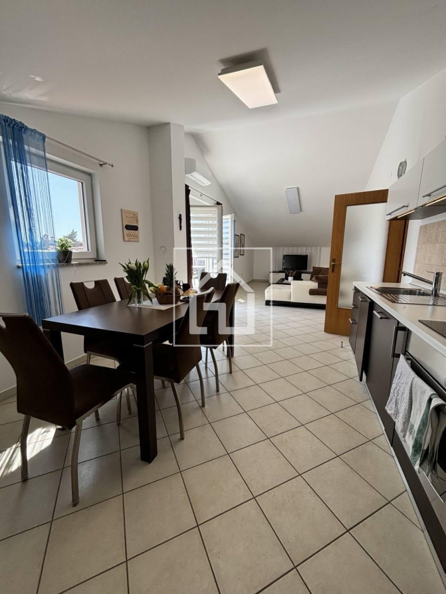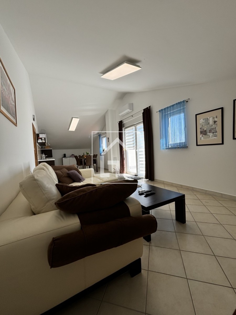 Die Wohnung besteht aus einem Eingangsbereich, einem Wohnzimmer mit offener Küche und Essbereich, von dem aus man auf die großzügige Terrasse mit Meerblick gelangt, zwei Schlafzimmern, einem Badezimmer und einem Abstellraum. Ein privater Parkplatz direkt vor dem Gebäude ist ebenfalls inbegriffen.