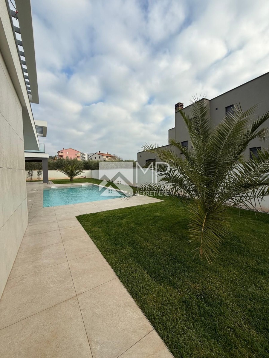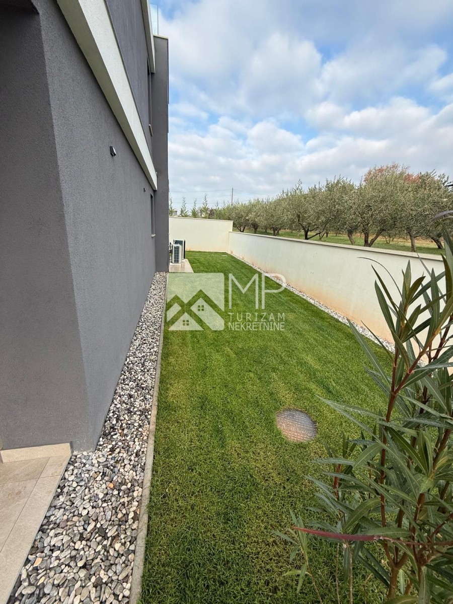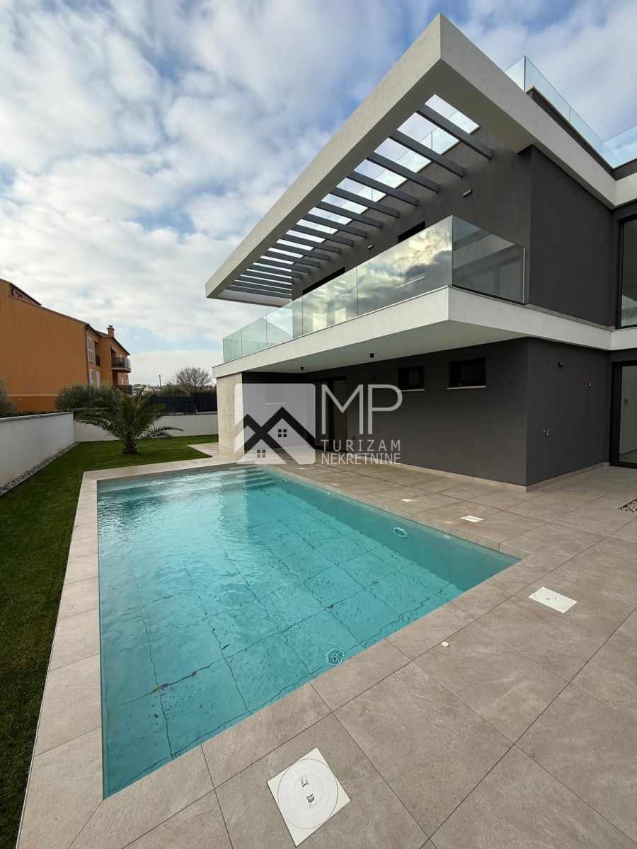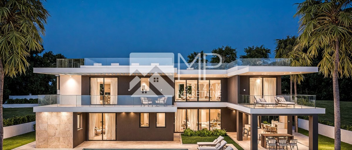 In außergewöhnlicher Lage in Pomer, nur 50 Meter vom Meer entfernt, steht eine moderne und architektonisch beeindruckende freistehende Villa mit vier geräumigen Schlafzimmern, jeweils mit eigenem Bad, sowie zwei zusätzlichen Gäste-WCs zum Verkauf.