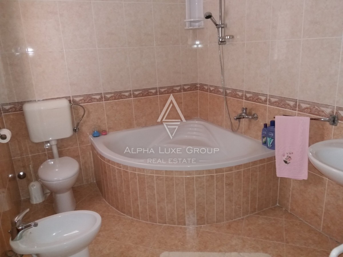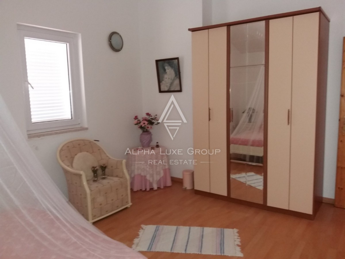 Im Obergeschoss finden Sie ein Badezimmer mit Badewanne und zwei großzügige Schlafzimmer, von denen jedes Zugang zu einer schönen Terrasse bietet. Dieses Zuhause ist eine vorbildliche Wahl für Familien oder jeden, der eine Mischung aus Komfort und Bequemlichkeit nahe dem Herzen von Poreč wünscht.