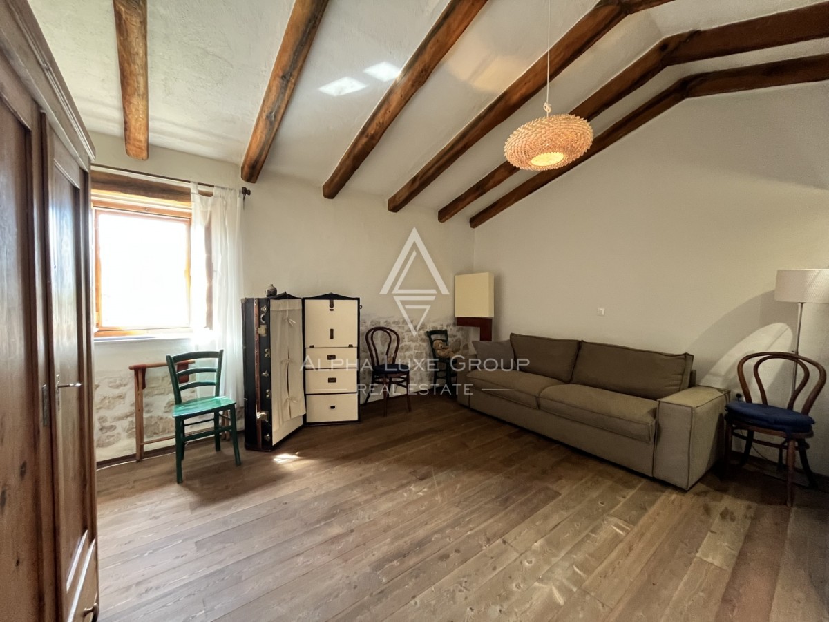 Nur 4 Kilometer vom Adriatischen Meer und dem historischen Zentrum von Poreč entfernt liegt dieses charmante Anwesen mit zwei vollständig renovierten istrischen Steinhäusern auf einem liebevoll angelegten Grundstück von 770 m². Die Kombination aus rustikalem Charme und modernem Komfort macht diese Immobilie mit 281 m² Wohnfläche, privatem Pool und mediterranem Garten zur perfekten Oase der Ruhe und Privatsphäre.