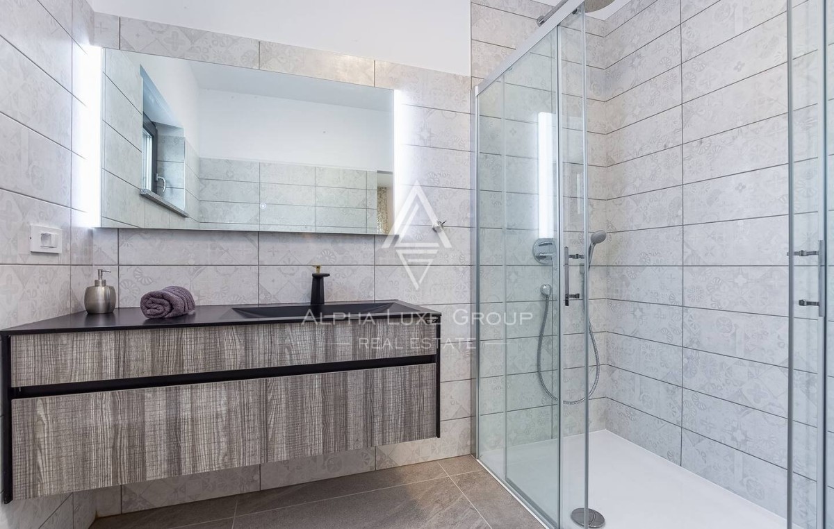 Zusätzliche Sicherheit bietet ein installiertes Alarmsystem. Im Außenbereich erwartet Sie ein 32 m2 großer Swimmingpool mit Kühlsystem und Heizung, der die Attraktivität der Villa erhöht. Eine Sommerküche mit Esstisch und ein Außen-WC vervollständigen das Poolerlebnis. Das Anwesen umfasst ein elektrisches Tor, das zu einem geräumigen Parkplatz mit Platz für 4 Autos führt und so zur Bequemlichkeit und Exklusivität dieser außergewöhnlichen Residenz beiträgt.
