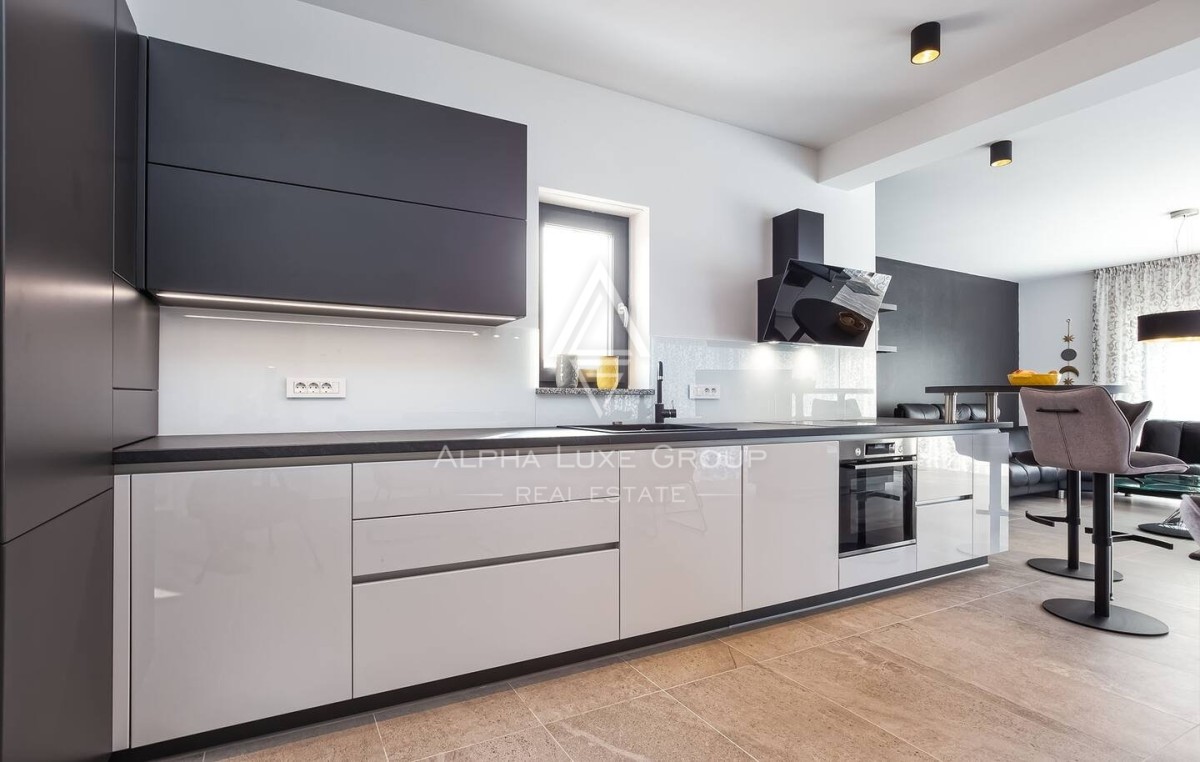 Die Villa ist mit modernster Ausstattung versehen, einschließlich Fußbodenheizung, betrieben durch eine Viesmann-Wärmepumpe, und Klimaanlagen in jedem Zimmer. Solarmodule auf dem Dach sorgen für effiziente Warmwasserbereitung. Alle Fenster und Glaswände sind mit elektrischen Rollläden und Mückennetzen ausgestattet, um Komfort und Privatsphäre zu gewährleisten. Bei Bau und Einrichtung der Villa wurden Materialien höchster Qualität verwendet, wobei jedes Detail sorgfältig bedacht wurde. Das Mobiliar wurde ausgewählt, um höchsten Luxus und Komfort zu bieten.