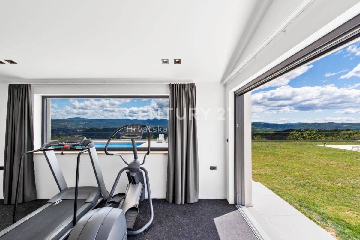 Neben den Wohnräumen im Erdgeschoss gibt es ein Badezimmer und einen Fitnessraum mit bezaubernder Aussicht.