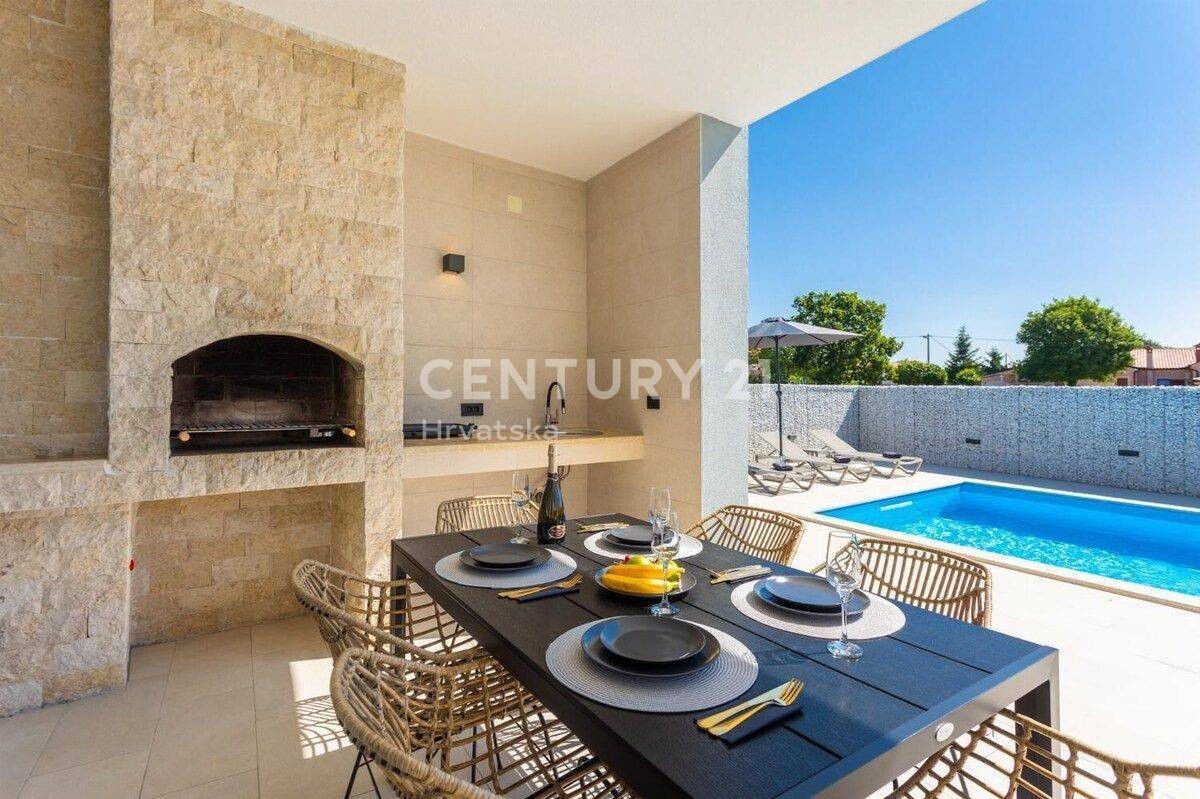 Das Grundstück ist 449 m² groß und in der angelegten Umgebung gibt es einen 34 m² großen Swimmingpool sowie eine Sommerküche und Parkplätze für 2 Autos.
