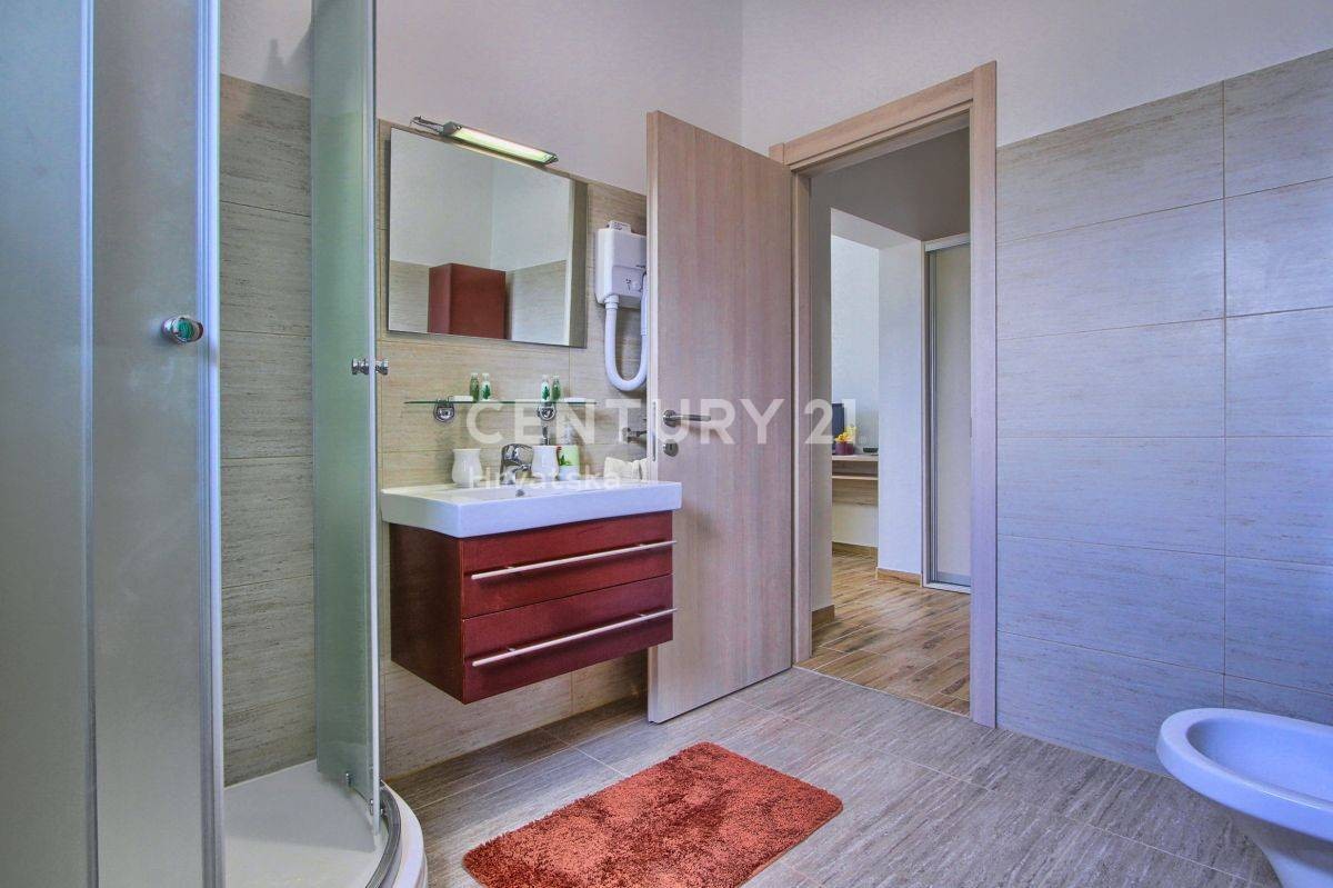 Der erste Stock besteht aus 3 weiteren Schlafzimmern, jedes mit eigenem Bad und Flur, und eines mit Zugang zur Terrasse mit Meerblick.