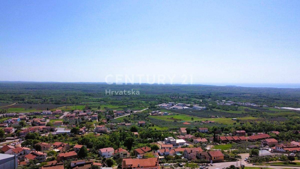 In einer sehr attraktiven Lage, in der Stadt Kaštelir, in einer Siedlung neuer Villen, befindet sich dieses schöne Baugrundstück mit Blick auf das Meer.