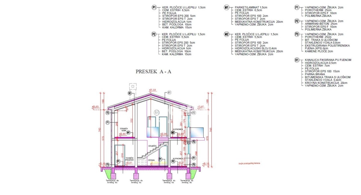 Die Beheizung erfolgt über eine Fußbodenheizung mit Wärmepumpe, die Kühlung über Klimaanlagen. Der Poolbereich umfasst 26 m². Zwischen den Häusern wird ein Zaun errichtet.