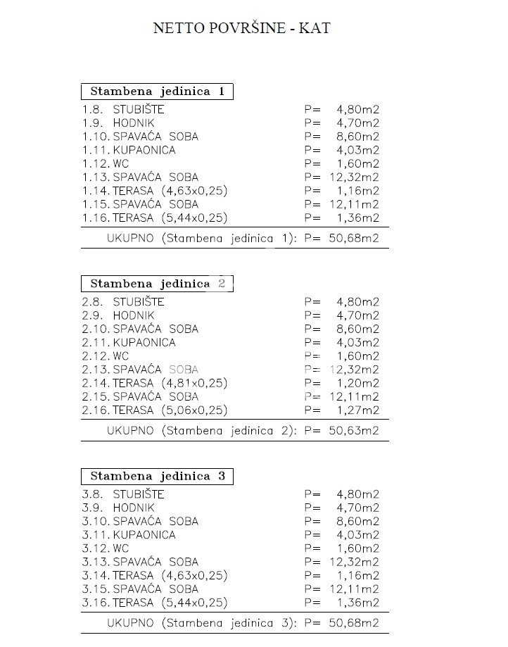 Ein Reihenhaus mit Pool bei Kaštela steht zum Verkauf. Die Wohnfläche beträgt 102 m², der Garten ca. 200 m². Im Erdgeschoss befinden sich ein Badezimmer, ein Abstellraum, ein Technikraum, eine Wohnküche und ein Wohnzimmer mit Zugang zur Terrasse. Im Obergeschoss befinden sich drei Schlafzimmer, ein Badezimmer und ein WC.
