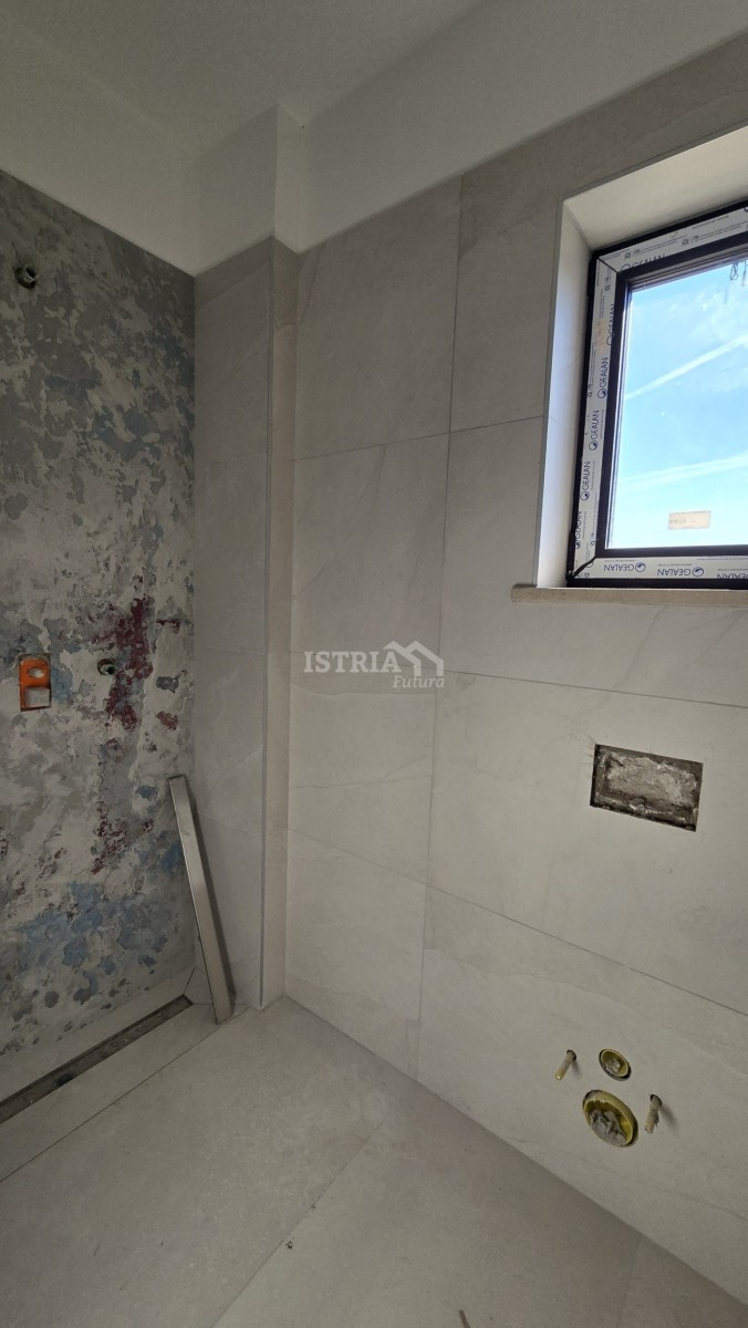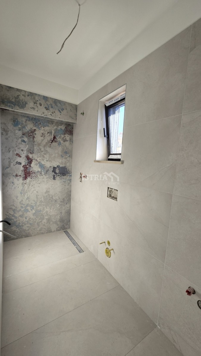 Das Erdgeschoss des Hauses besteht aus einem Wohnzimmer mit Küche und Essbereich, Toilette und Abstellraum. Der erste Stock des Hauses besteht aus einem Flur, zwei Schlafzimmern mit eigenem Bad, wobei ein Schlafzimmer über eine überdachte Terrasse von 7 m2 verfügt, während der letzte Stock aus einem Flur, einem Schlafzimmer mit eigenem Bad und einer geräumigen Dachterrasse mit wunderschönem Blick auf das Meer besteht.
