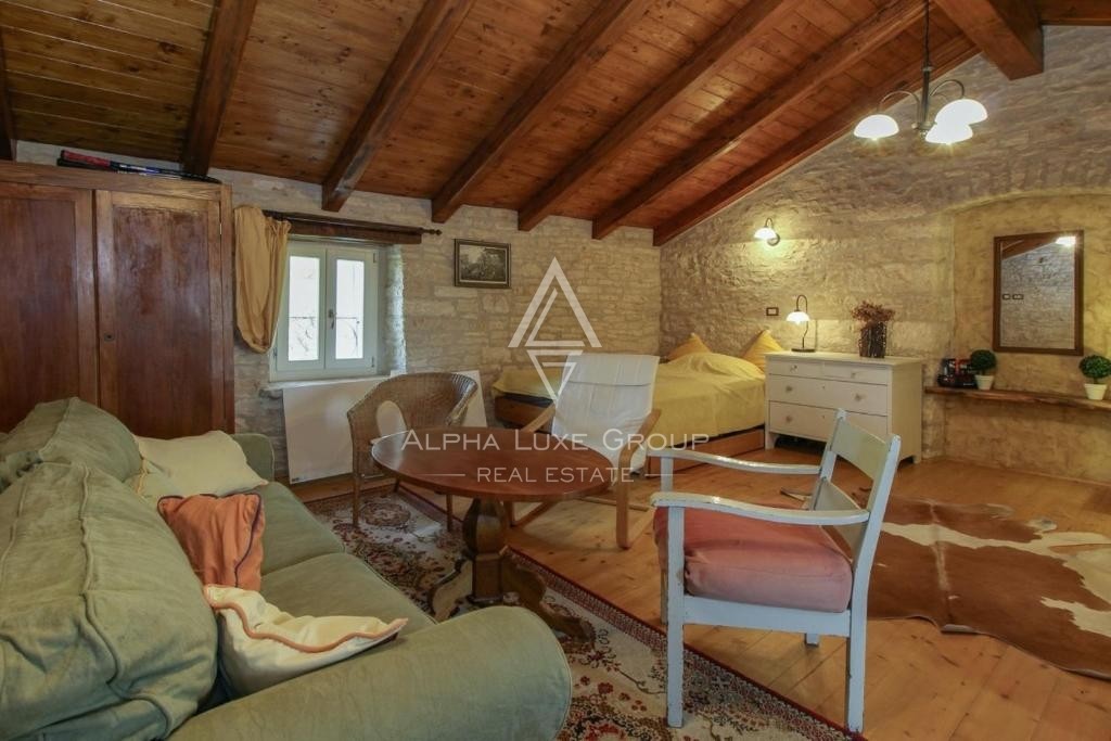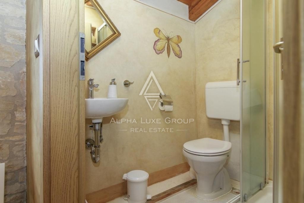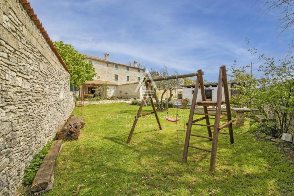 Ein zusätzlicher Abstellraum von 45 m² bietet vielseitige Nutzungsmöglichkeiten. Der großzügige Außenbereich bietet eine private Oase der Ruhe für Familie und Freunde, umgeben von Natur. Die strategische Lage ermöglicht einen einfachen Zugang zu den Küstenstädten Rovinj, Poreč und Pula, die als touristisches Herz Istriens bekannt sind und nur eine kurze Autofahrt entfernt liegen.