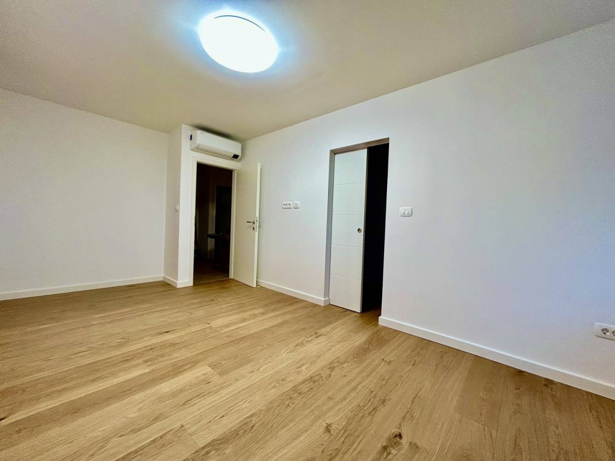 Die Wohnung wurde im Jahr 2026 vollständig renoviert mit folgenden Arbeiten: Erneuerung der Elektro- und Wasserinstallationen, Einbau neuer PVC-Fenster mit Fliegengittern und Rollläden, Verputzen der Wände mit Fassadennetz und Kleber, doppelte Spachtelung und abschließende Anstriche, abgehängte Decken mit zusätzlicher Schall- und Wärmedämmung, im Badezimmer moderne neue Keramik, in den Schlafzimmern, der Küche, dem Wohnzimmer und dem Essbereich wurde dreischichtiger Eichenparkett verlegt.