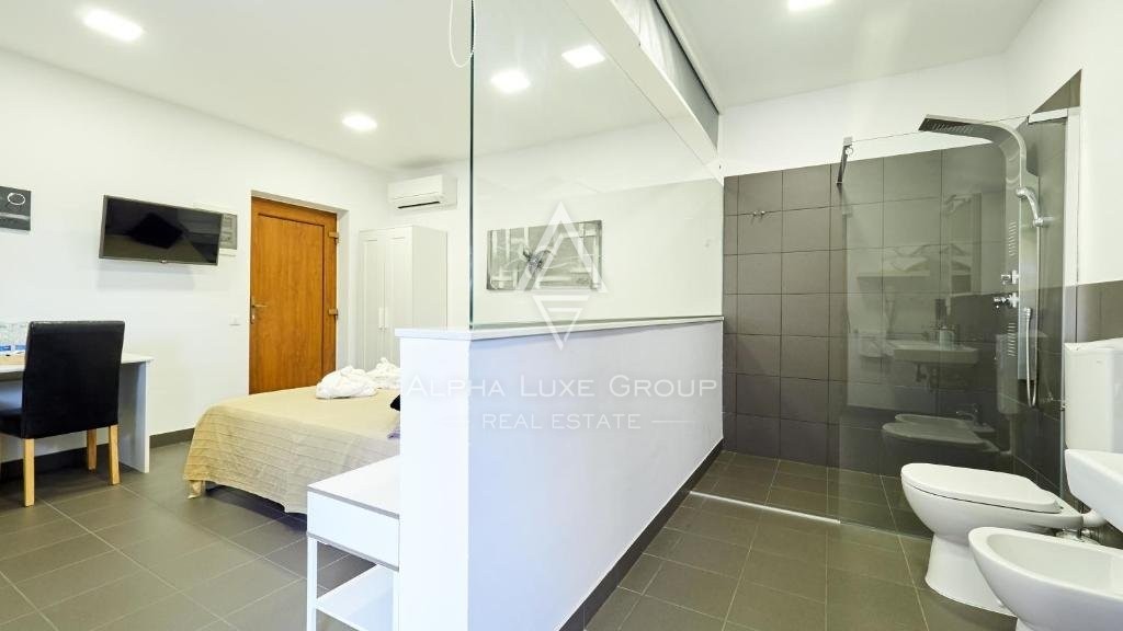 Entdecken Sie in der lebendigen Stadt Umag, Istrien, dieses zeitgenössische Familienhotel, nur 4 Minuten vom pulsierenden Stadtzentrum und 3 Minuten von malerischen Stränden entfernt. Diese moderne Anlage bietet 670 m2 Wohnfläche auf drei Etagen, kombiniert mit hochwertiger Unterkunft, ausgezeichneter Küche und einem außergewöhnlichen Wellnessbereich.