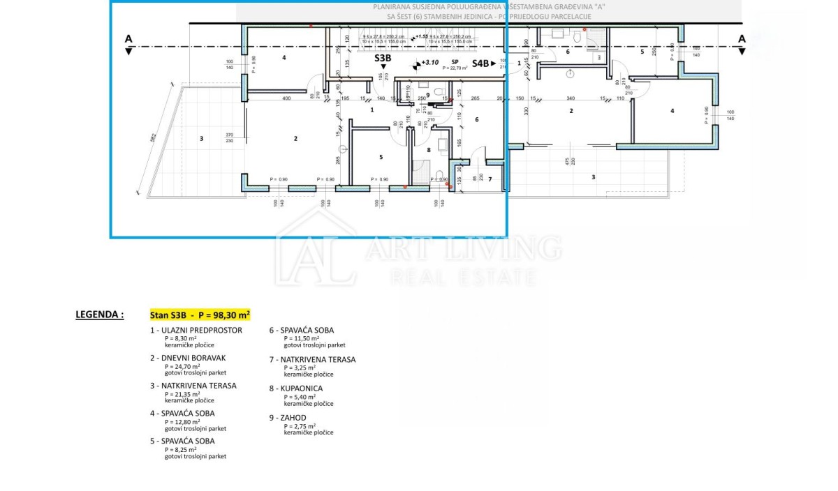 In attraktiver Lage in Istrien, nahe der Stadt Umag und nur 400 Meter von den ersten Stränden entfernt, befindet sich dieses moderne, gut gebaute Gebäude mit nur 12 Wohneinheiten. In ruhiger Umgebung, ideal zum Wohnen oder für den Urlaub, befindet sich das Apartment S3B im 1. Stock mit einer Gesamtfläche von 98,30 m².