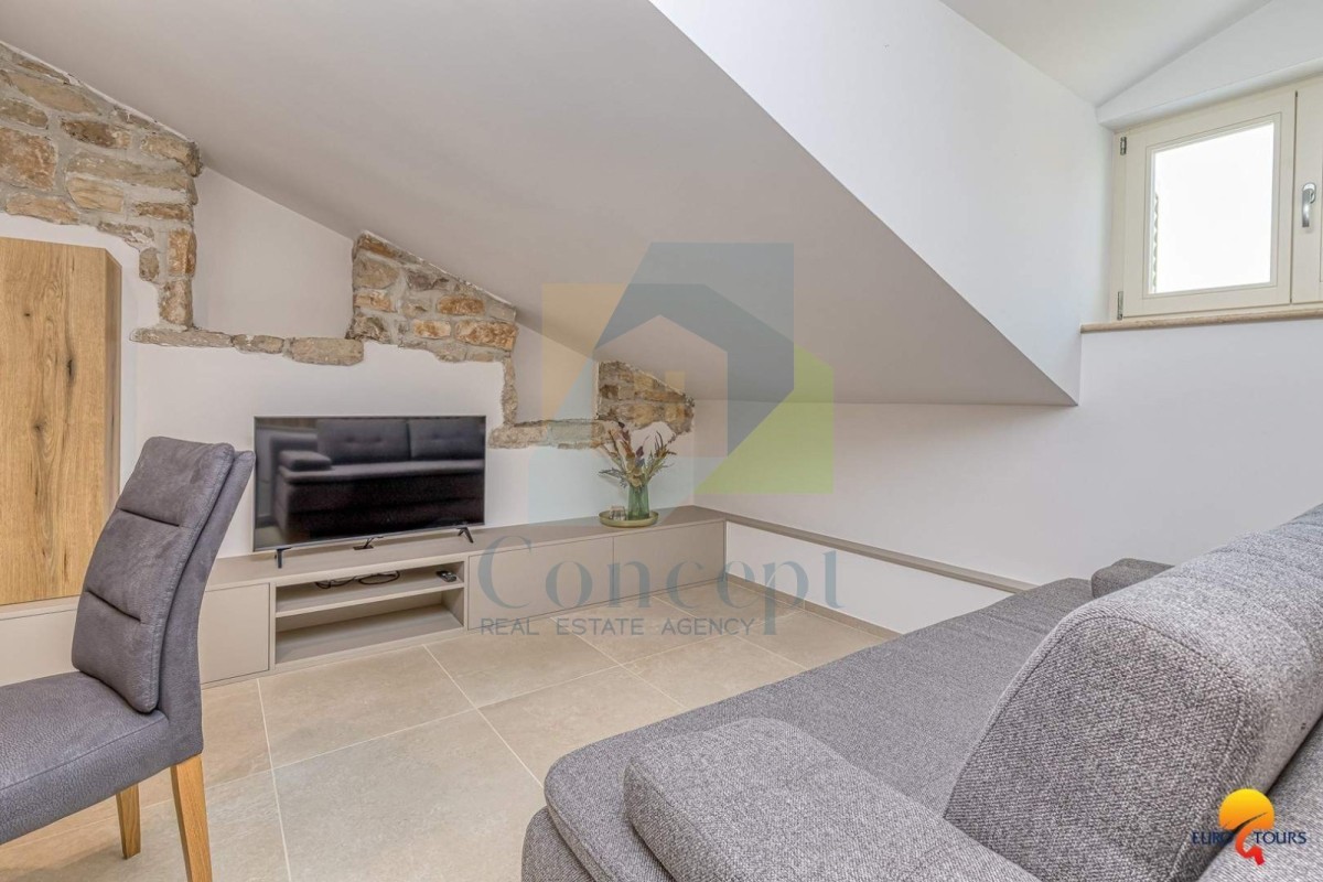 Zum Verkauf steht ein attraktives Steinhaus, das vollständig renoviert und möbliert ist, mit drei Apartments, gelegen in der Nähe des Meeres. Das Haus hat eine Fläche von 120 m² und befindet sich im Zentrum von Vrsar, nur 350 Meter von der Küste entfernt.