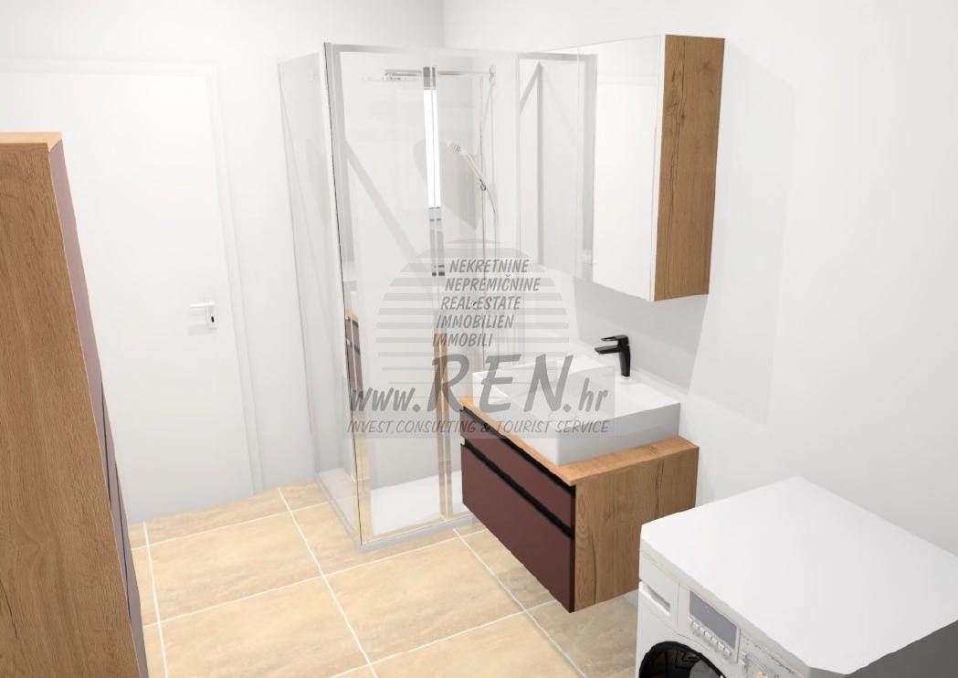 Die Wohnung in der Nähe von Buje hat insgesamt 76,57 m2, sie befindet sich im Erdgeschoss, sie ist 10 min. (10000 m) vom Meer und vom wunderschön angelegten Strand entfernt, 5 Min. (2000 m) vom Zentrum von Buje entfernt. Die Wohnung besteht aus einer Küche/Wohnzimmer/Esszimmer, 2 Schlafzimmern, Badezimmer, Speisekammer, Abstellraum und Terrasse. Es ist mit Klimaanlagen und einem Holzofen ausgestattet. Es verfügt über einen eigenen Parkplatz und einen Gemeinschaftspool.