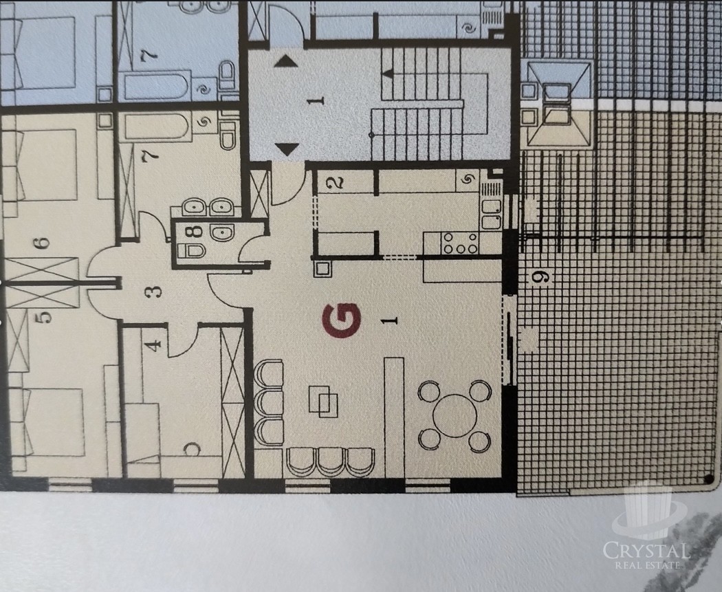 Zum Verkauf steht eine komplett möblierte Wohnung im zweiten Stock eines Wohngebäudes. Die Wohnung hat eine Fläche von 159 m², davon 107 m² Wohnfläche und eine schöne 52 m² große Terrasse.