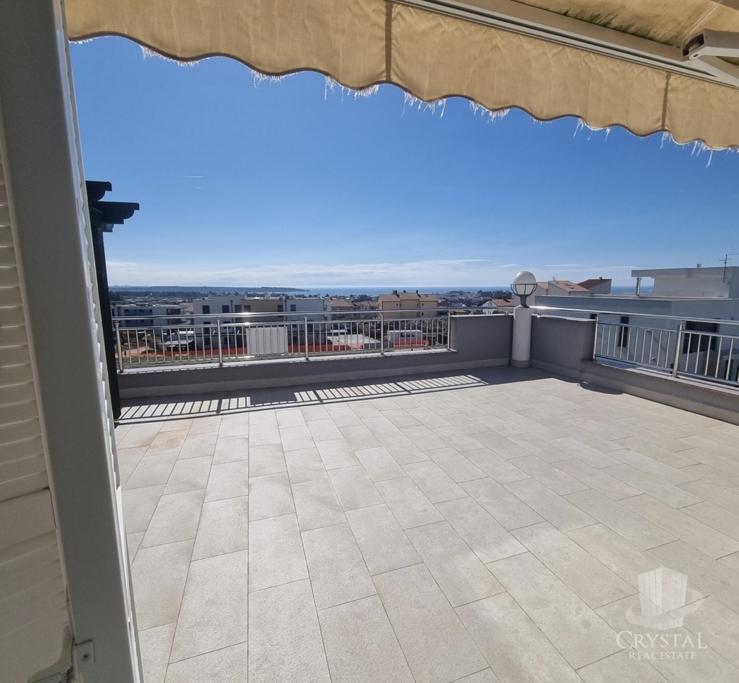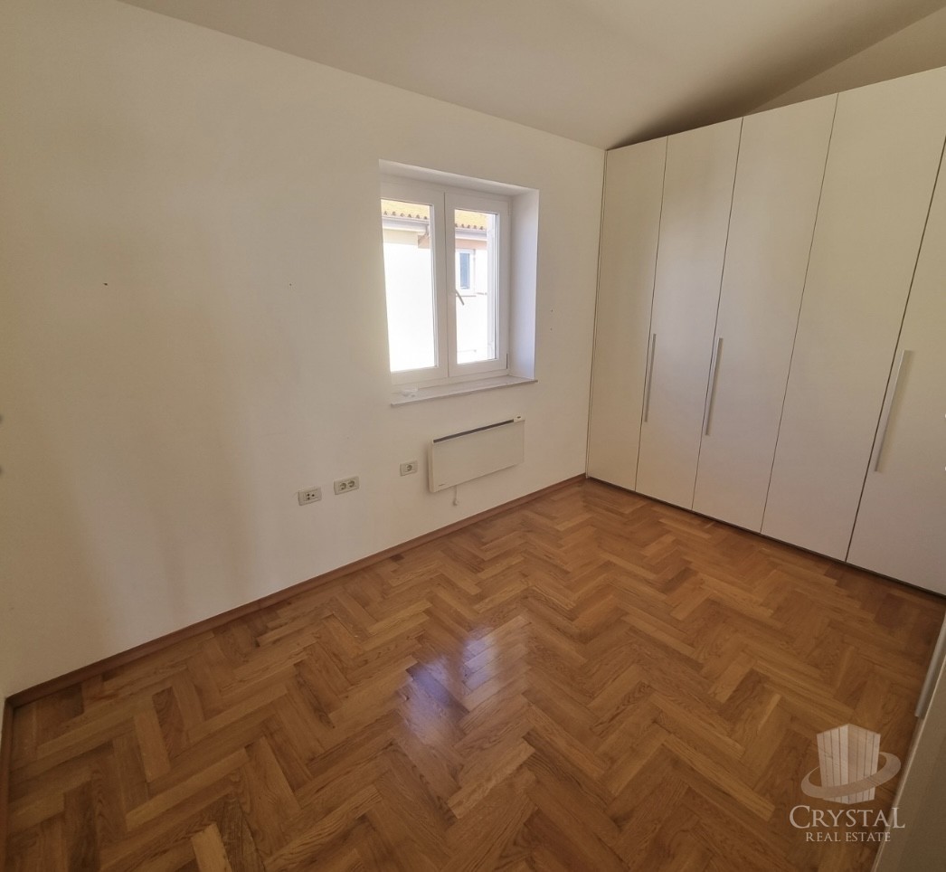 Die Wohnung verfügt über einen Eingangsbereich, ein Gäste-WC, ein modernes Badezimmer, drei komfortable Schlafzimmer, eine voll ausgestattete Küche und ein geräumiges Wohnzimmer mit Zugang zu einer schönen Terrasse mit Panoramablick auf Novigrad und das Meer.