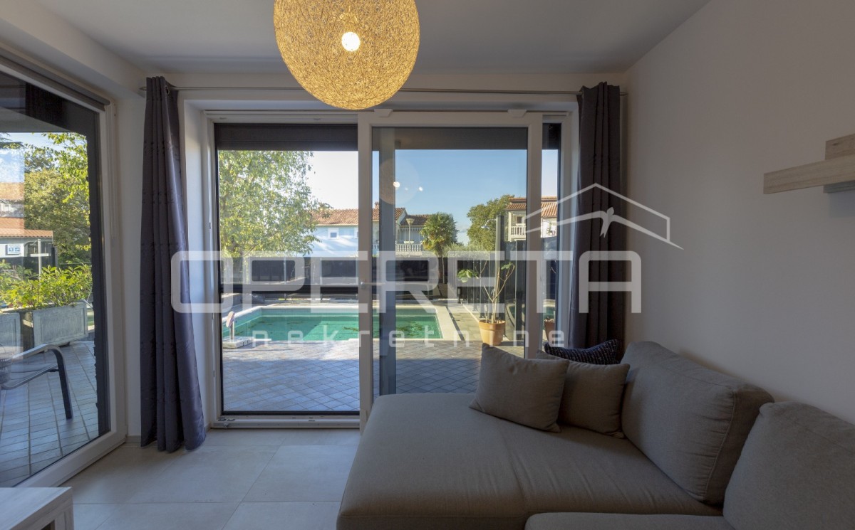 Erdgeschosswohnung mit beheiztem Swimmingpool.