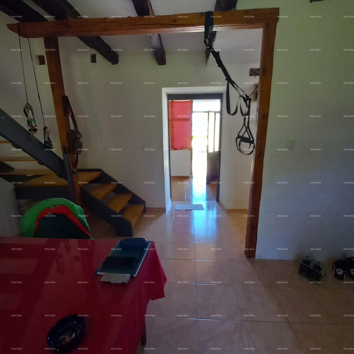 Zum Verkauf steht ein authentisches istrisches Haus, gelegen in der ruhigen Ortschaft Valtura, ideal für Urlaub oder ganzjähriges Wohnen. Die Immobilie erstreckt sich über zwei Etagen und bietet einen funktionalen Grundriss sowie einen wunderschönen gepflasterten Garten mit überdachter Terrasse für das Genießen im Freien.