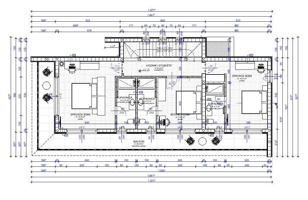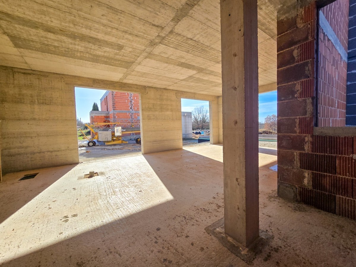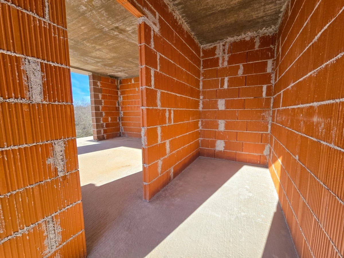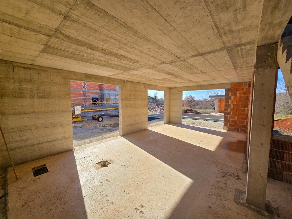 POREČ- MATULINI- Approx. 10 minutes' drive from the sea and the center of Poreč - a villa of modern design under construction on a plot of 1080 m2 - Inside the fenced yard, the villa will have a swimming pool of 36.30 m2 and a summer kitchen of 23.88 m2, which is connected to an outdoor storage room of 4, 91m2. This modern villa offers a net living area of 179.61m2, it is designed on two floors: ground floor and first floor. The main entrance is on the north facade, where a covered passage leads to the corridor that connects the bedroom with the accompanying bathroom, the guest toilet, and leads to the open space consisting of the kitchen, dining room and spacious living room. From the dining room/living room it is possible to exit to a partially covered terrace. An internal staircase leads to the rooms located on the first floor, three bedrooms with attached bathrooms, and from each room it is possible to exit to a balcony that offers a view of the surroundings.