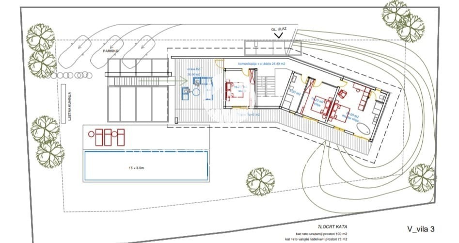 "Villa under designation 3" will have a spacious living room, 4 bedrooms, 3 bathrooms with toilet, sauna, guest toilet, additional shower in the sauna room, laundry room.