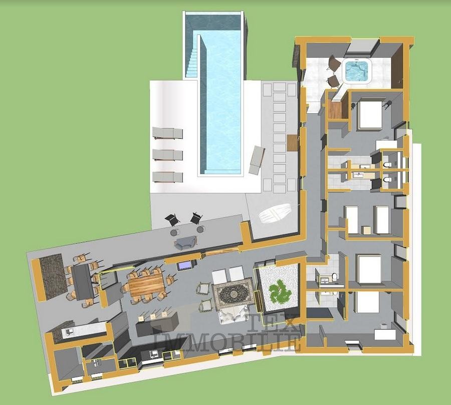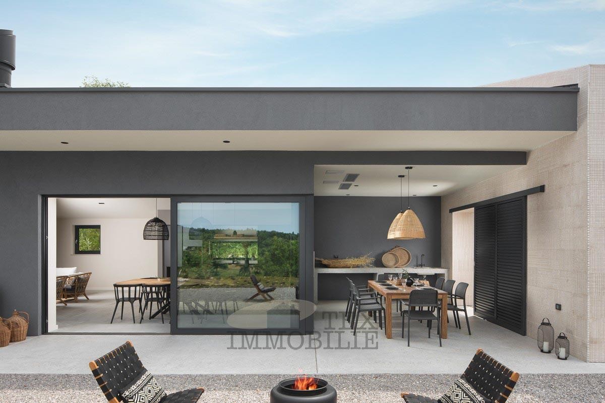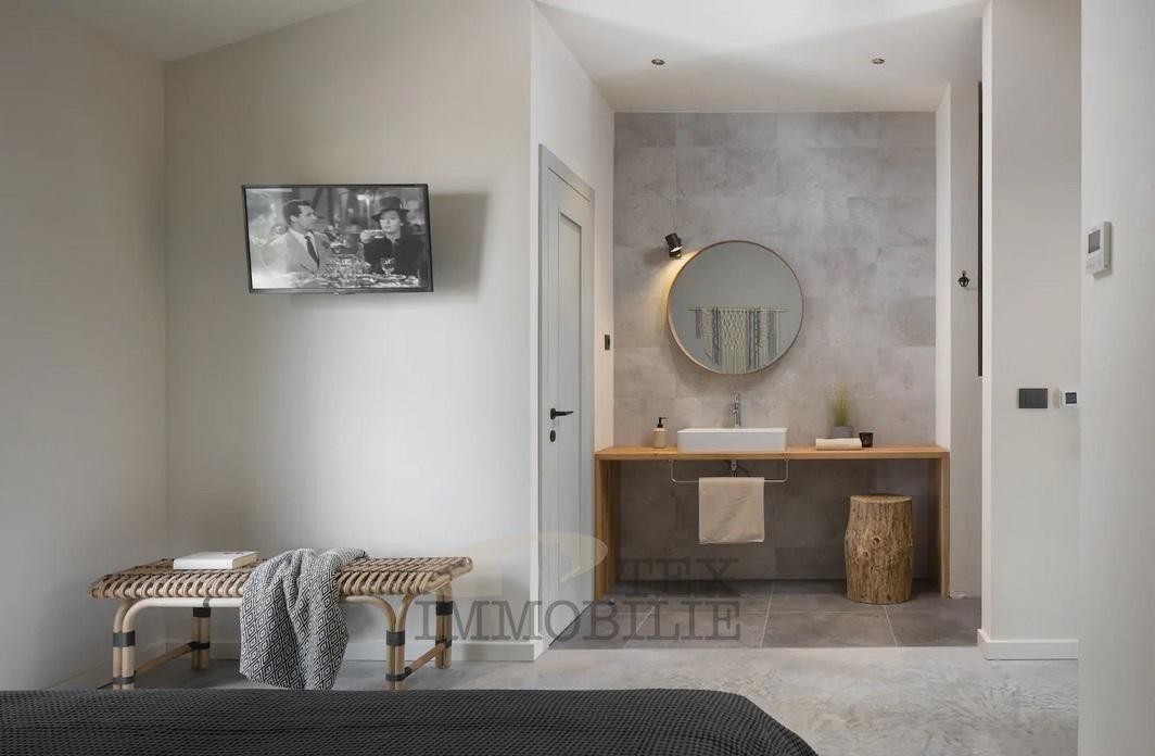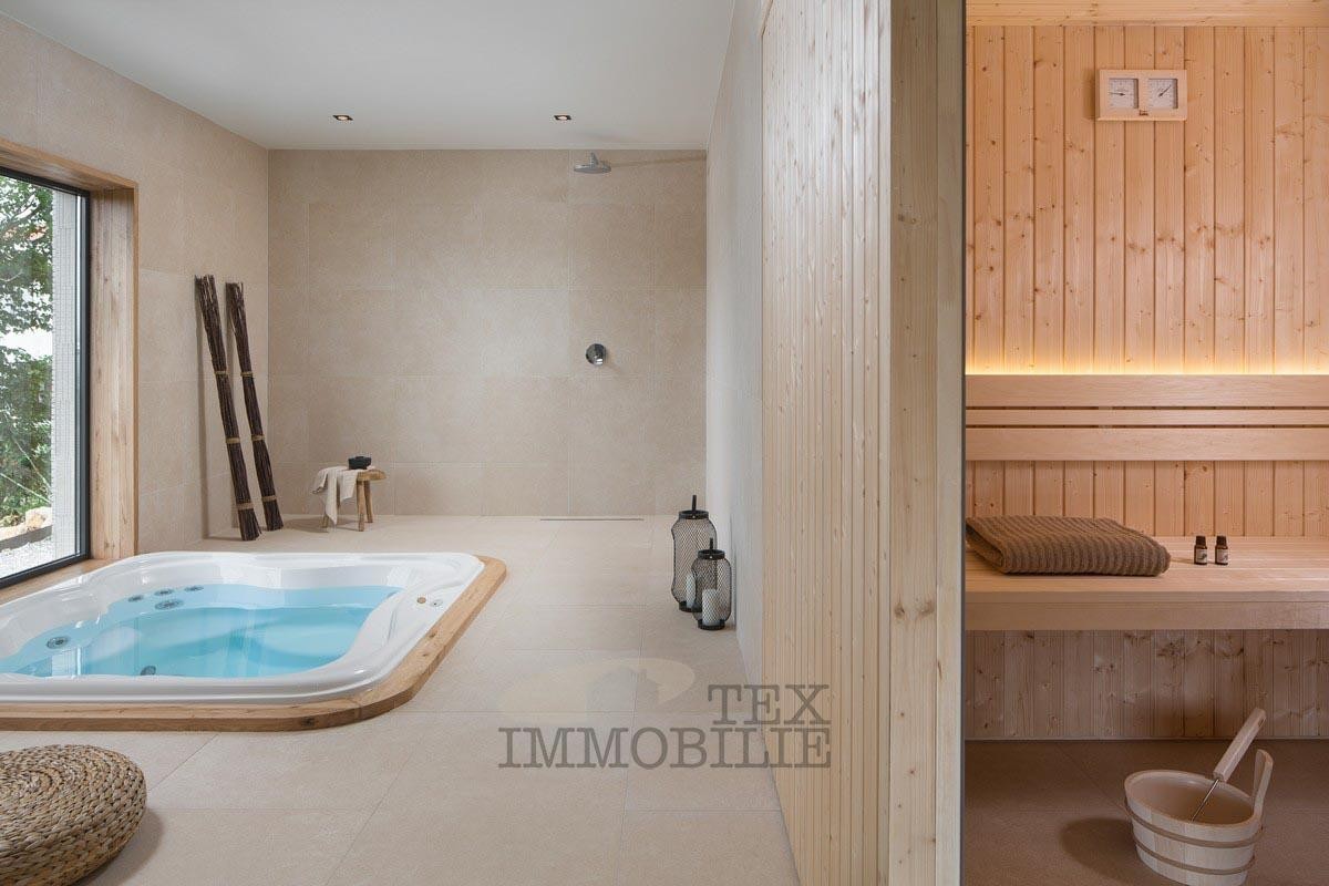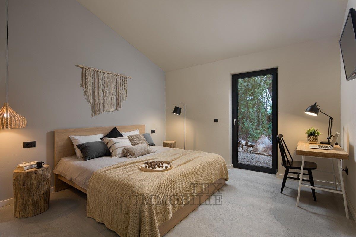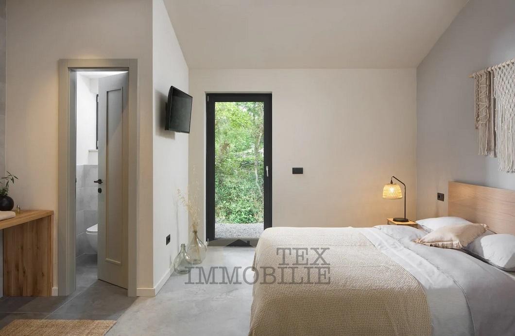 We are selling a beautiful villa that perfectly combines traditional elements with modern design. Located in a green and quiet environment near the Lim Bay, 23 km from the sea and the famous tourist destinations of Porec and Rovinj. The villa spreads over 289 m2 and consists of a large living room, dining room, and kitchen of superior design, 4 bedrooms with private bathrooms with showers, covered outdoor dining room with barbecue, summer kitchen, storage, toilet for guests, and wellness room which features a Finnish sauna and a whirlpool. Hidden fan-coil units are the most modern heating and cooling systems that provide complete comfort in all rooms of the villa. The surroundings of the house are adorned with a large pool of 40 m2 and a sun deck ideal for relaxing and enjoying.