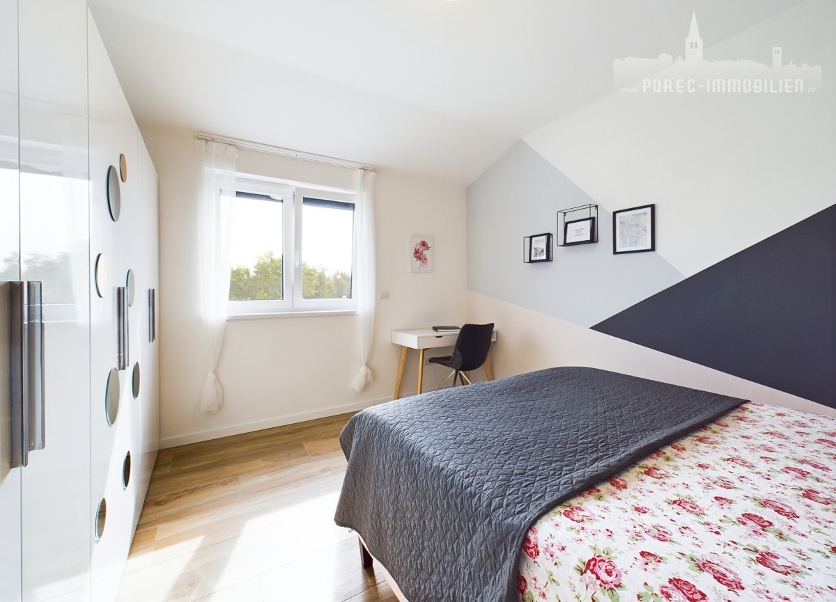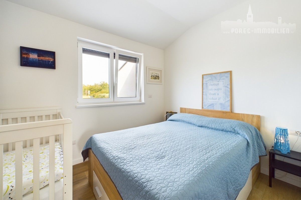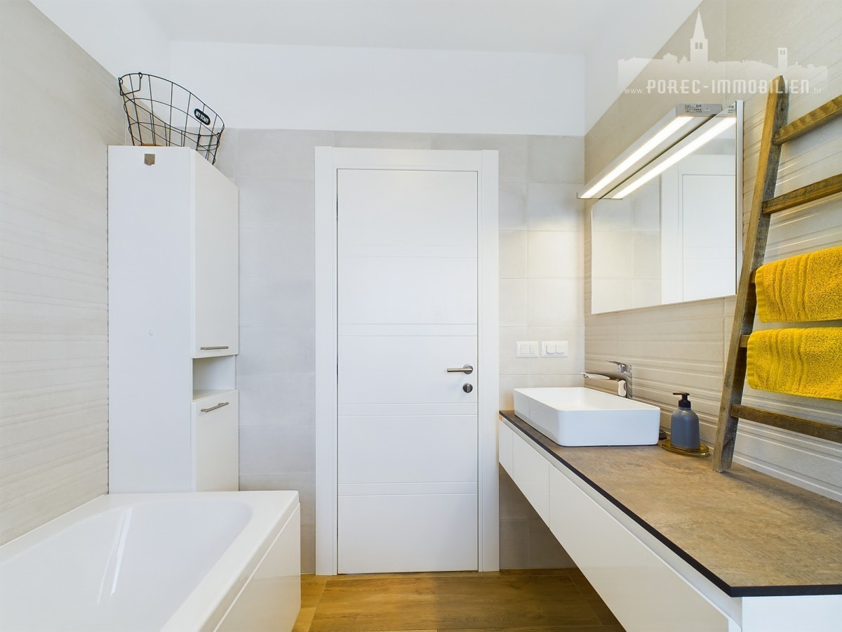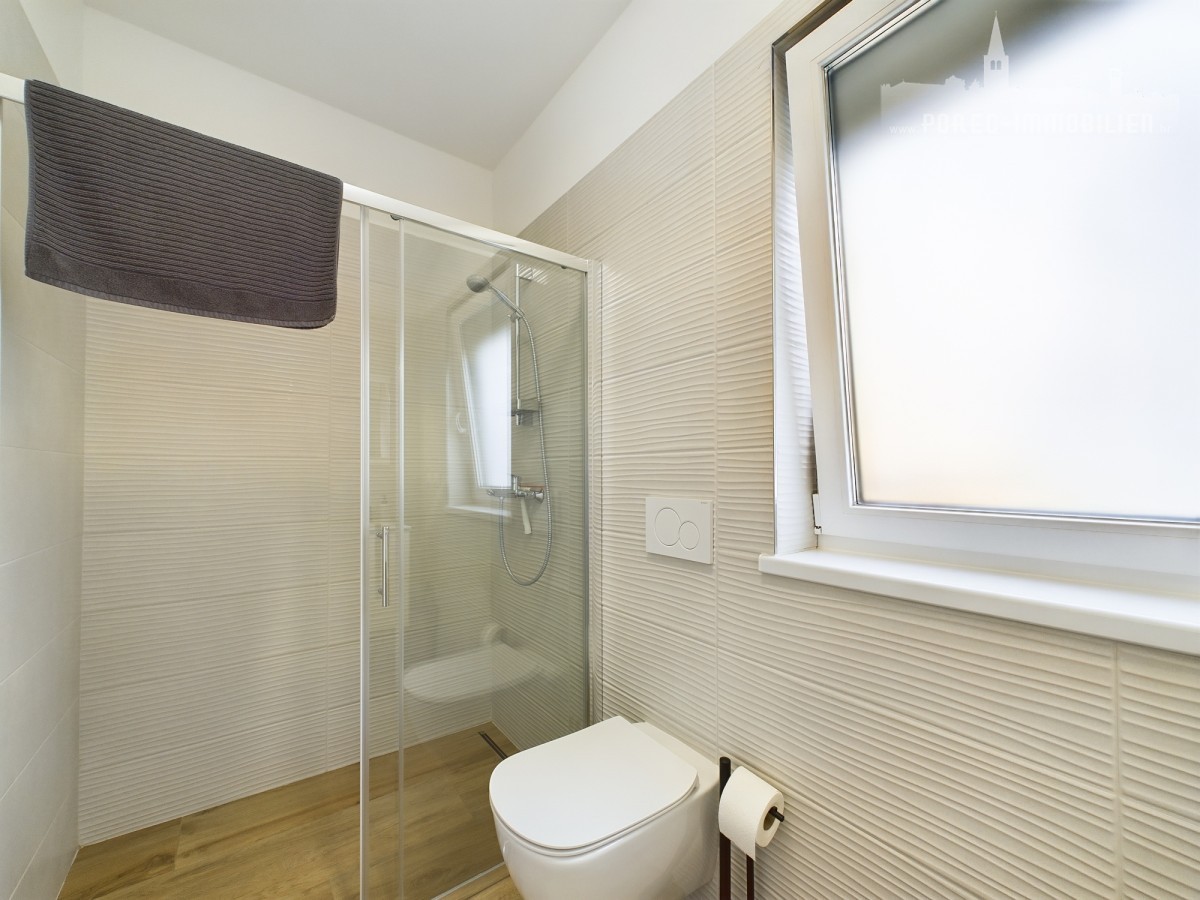 For sale is a beautiful, modernly designed villa with a pool, only 5 km from the center of Porec and 500 meters from the first shops.