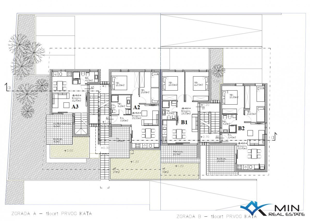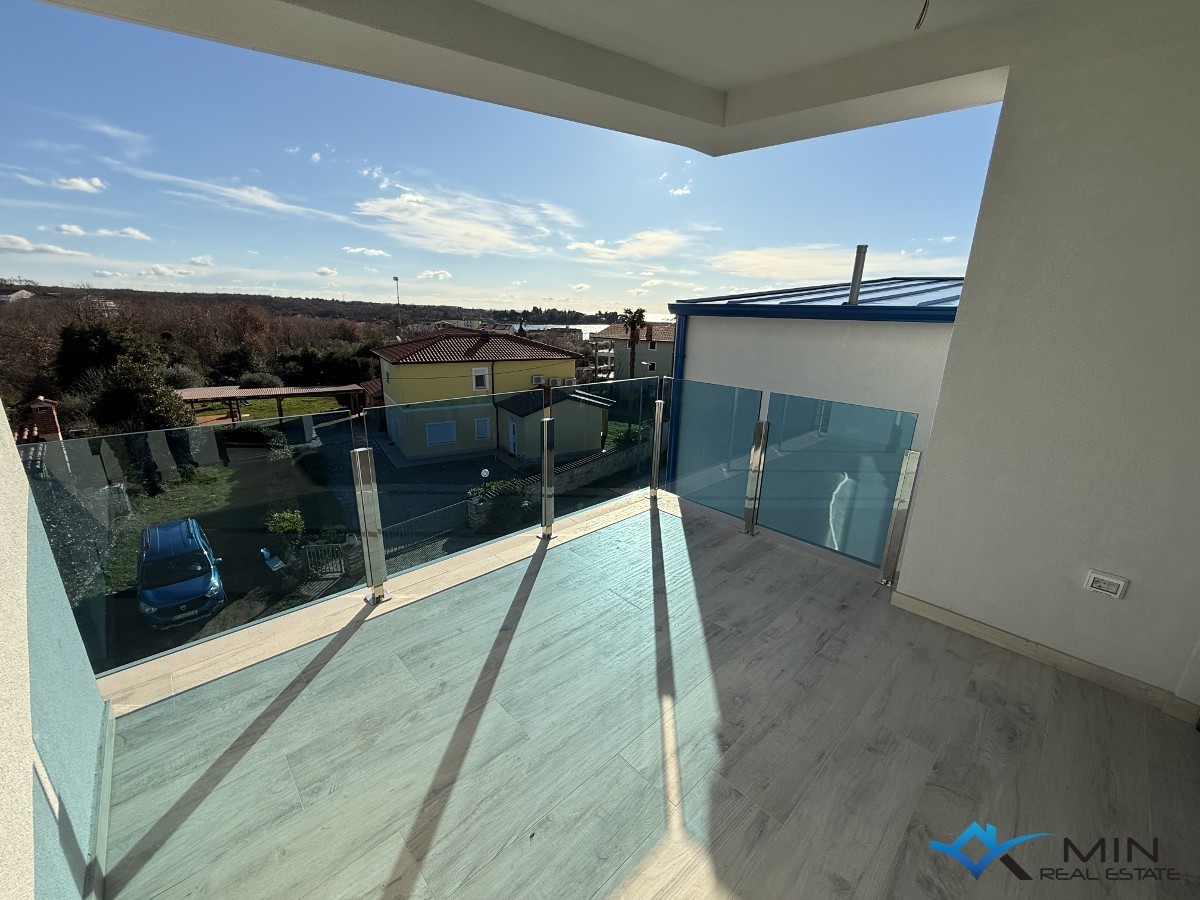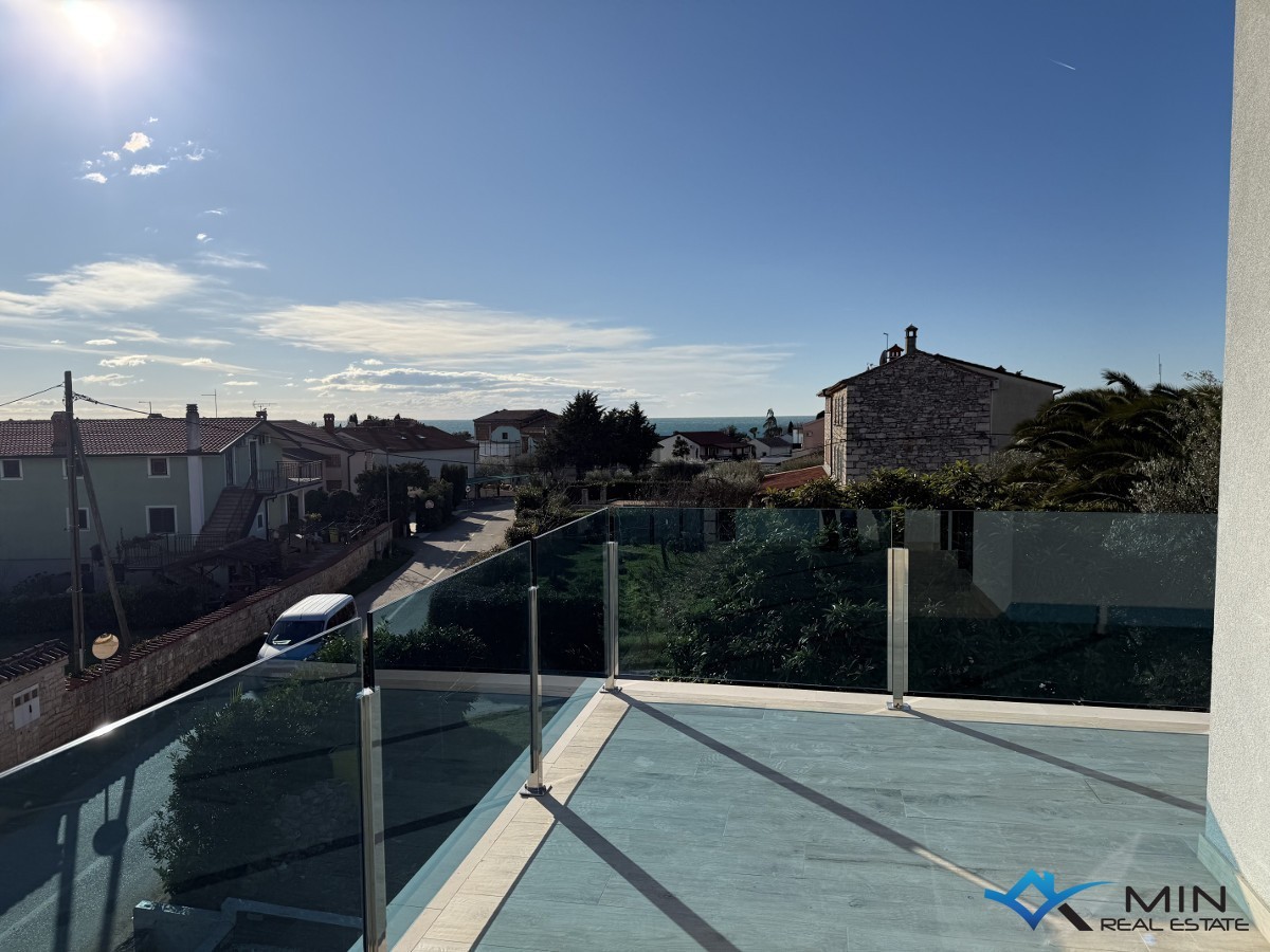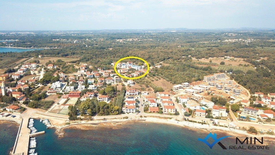 An apartment under construction in a quiet location in Lovrečica is for sale. The apartment is located on the 1st floor of a building with a total of 4 apartments. The apartment has a closed space of 49, 90 m2 and consists of a hallway, bathroom, 2 bedrooms, an open space where there is a kitchen with a dining room and a living room. The apartment has a covered terrace of 14.40 m2, a storage room on the ground floor of the building of 7.55 m2 and 2 parking spaces, 1 of which is covered. After calculation according to a certain coefficient, apartment B2 has 72 m2. The apartment can be used for residential or tourist purposes. The distance from the center of Umag is 5 km, and Novigrad is 7 km away.
