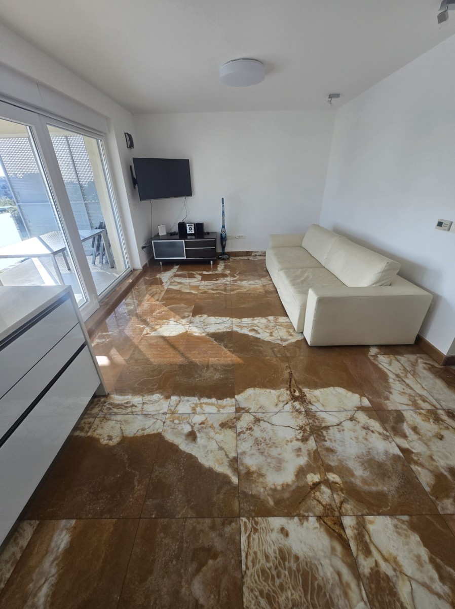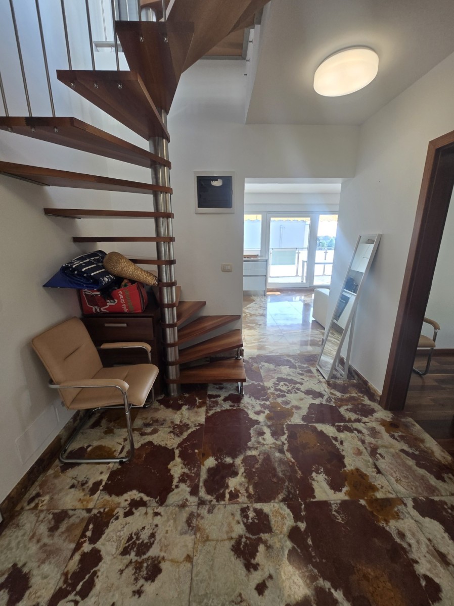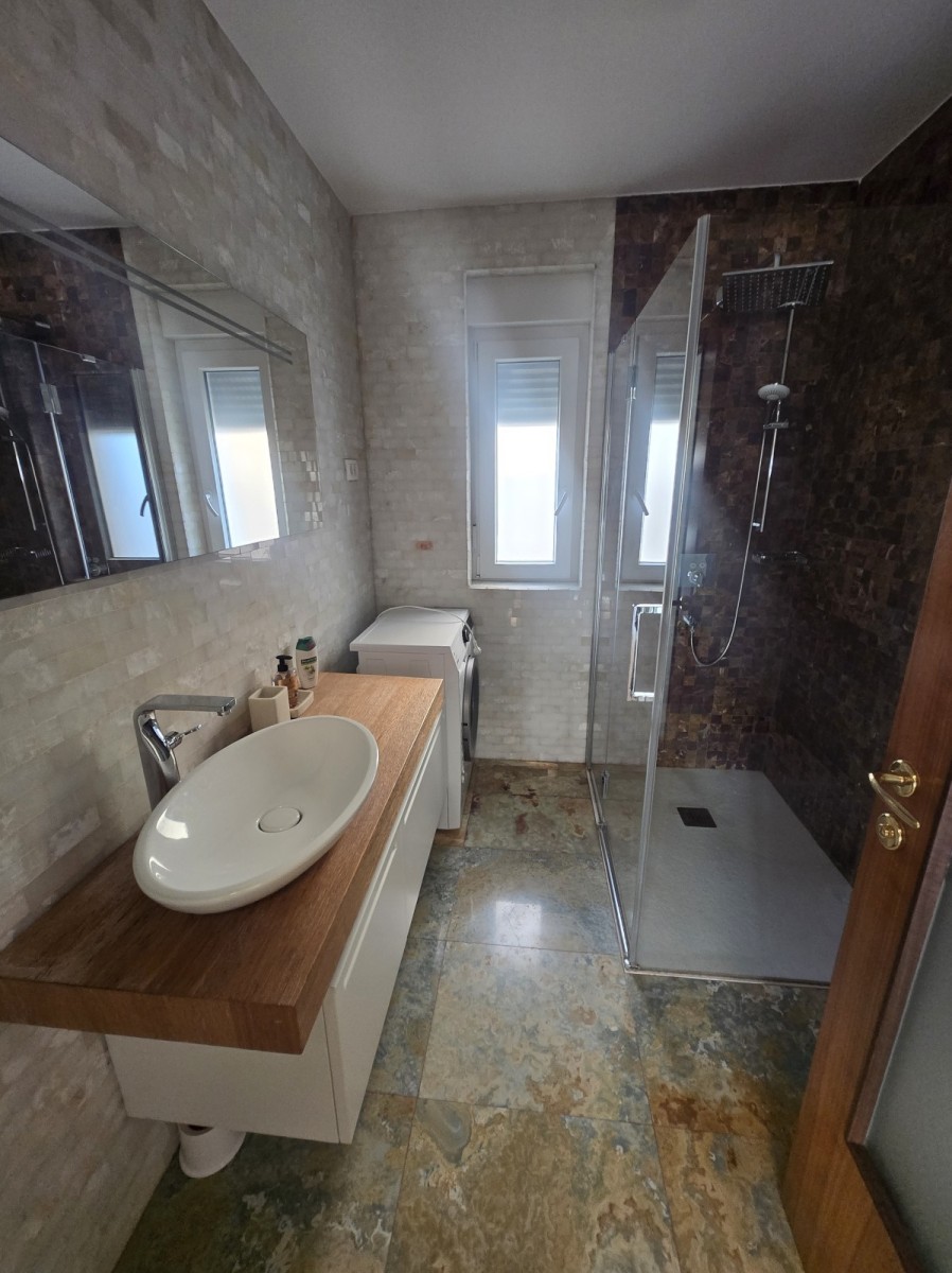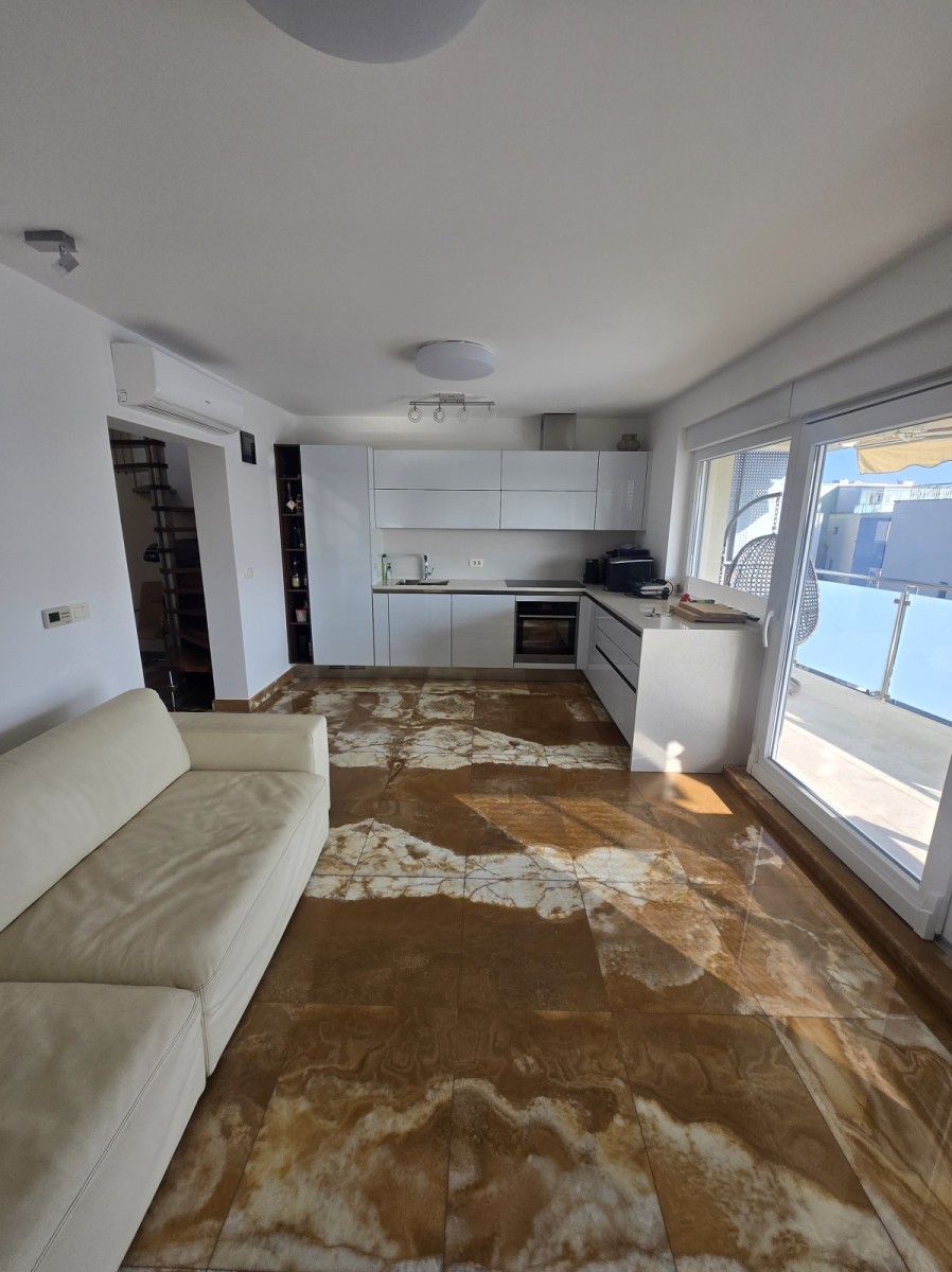 I am selling an apartment in Novigrad by the sea, with a sea view. The apartment has a total of 67 m2, 2 bedrooms, one bathroom and one toilet, living room, kitchen, hallway and is connected to the first floor by internal stairs. On the roof we have a terrace of approximately 70 m2, toilet, sea view and the apartment is located close to the shop and the sea. The apartment is being sold with furniture, 2 covered parking spaces, storage room and the building has an elevator. The total purchase price is 350,000 EUR.