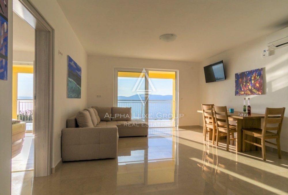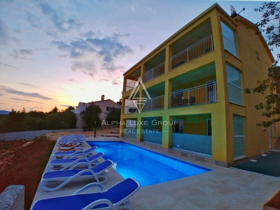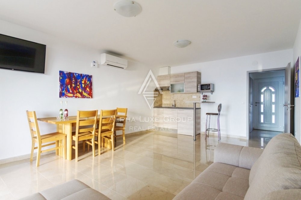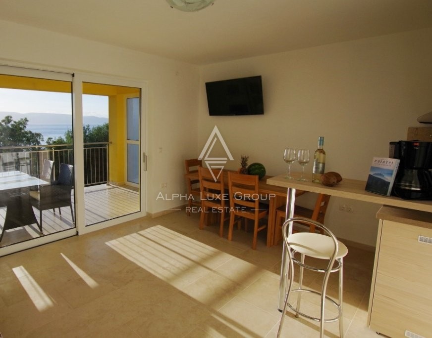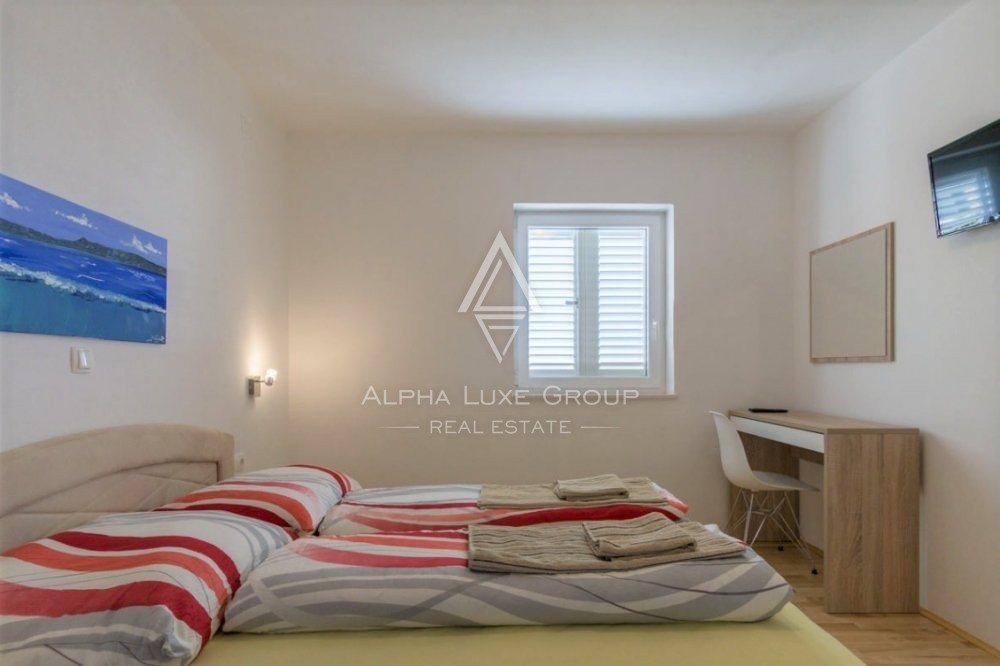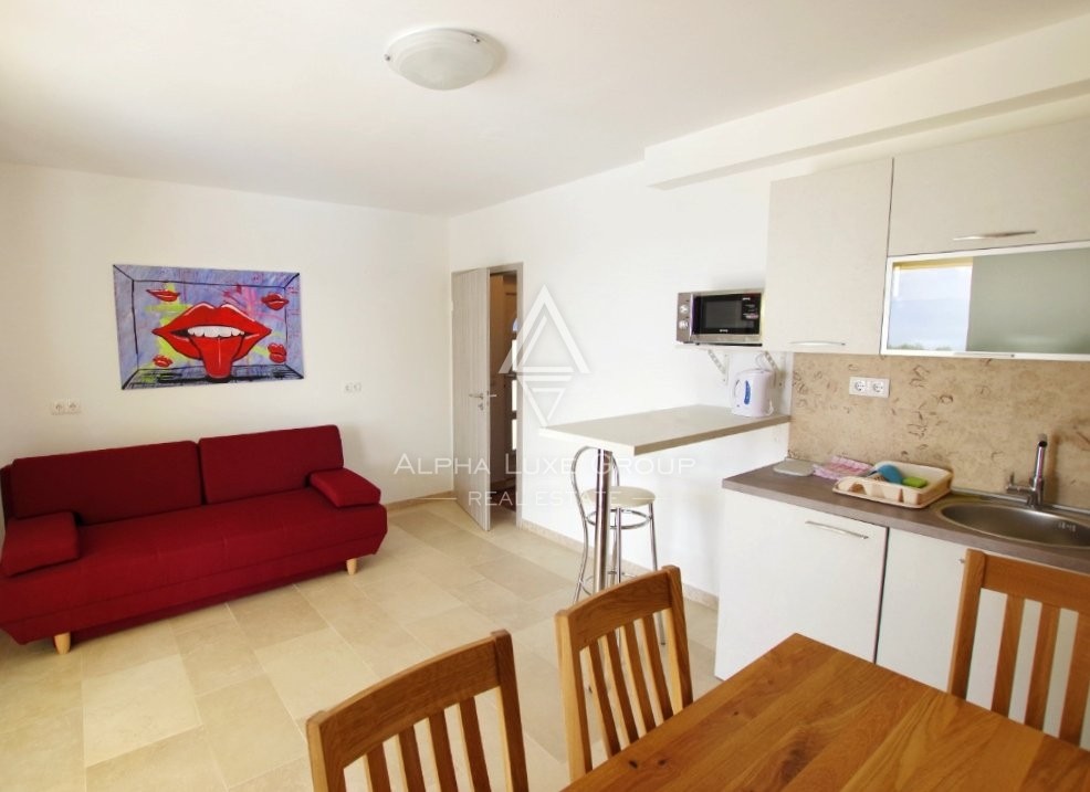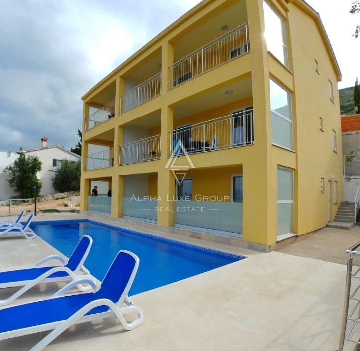 Three flats with two bedrooms and two bathrooms, as well as three flats with one bedroom and one bathroom, make up the building. Each room has a balcony, while they share a 40m2 swimming pool with a sunbathing zone.