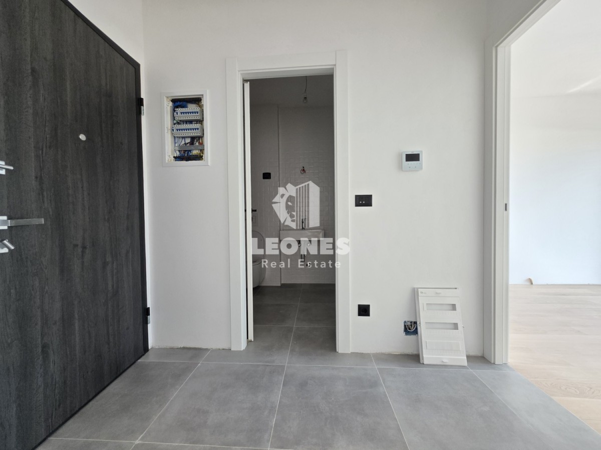 The residential building is entirely designed from reinforced concrete monolithic construction, interfloor panels. The partition walls inside the apartments are made of double-thick plasterboard linings with additional thermal and sound insulation. The facade lining is in the ETICS system with 10 cm thick thermal insulation. The external facade openings are closed with high-quality multi-chamber PVC anthracite joinery of the latest generation. The bedrooms have electric roller shutters. All apartments are equipped with high-quality multisplit heating and cooling systems whose operating characteristics ensure maximum comfort and economy.