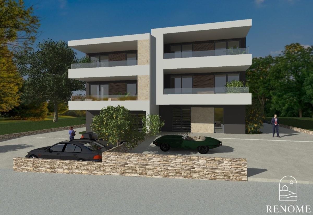An apartment with an area of 98.23 m2 is for sale on the 2nd floor of a smaller building with 4 apartments.
