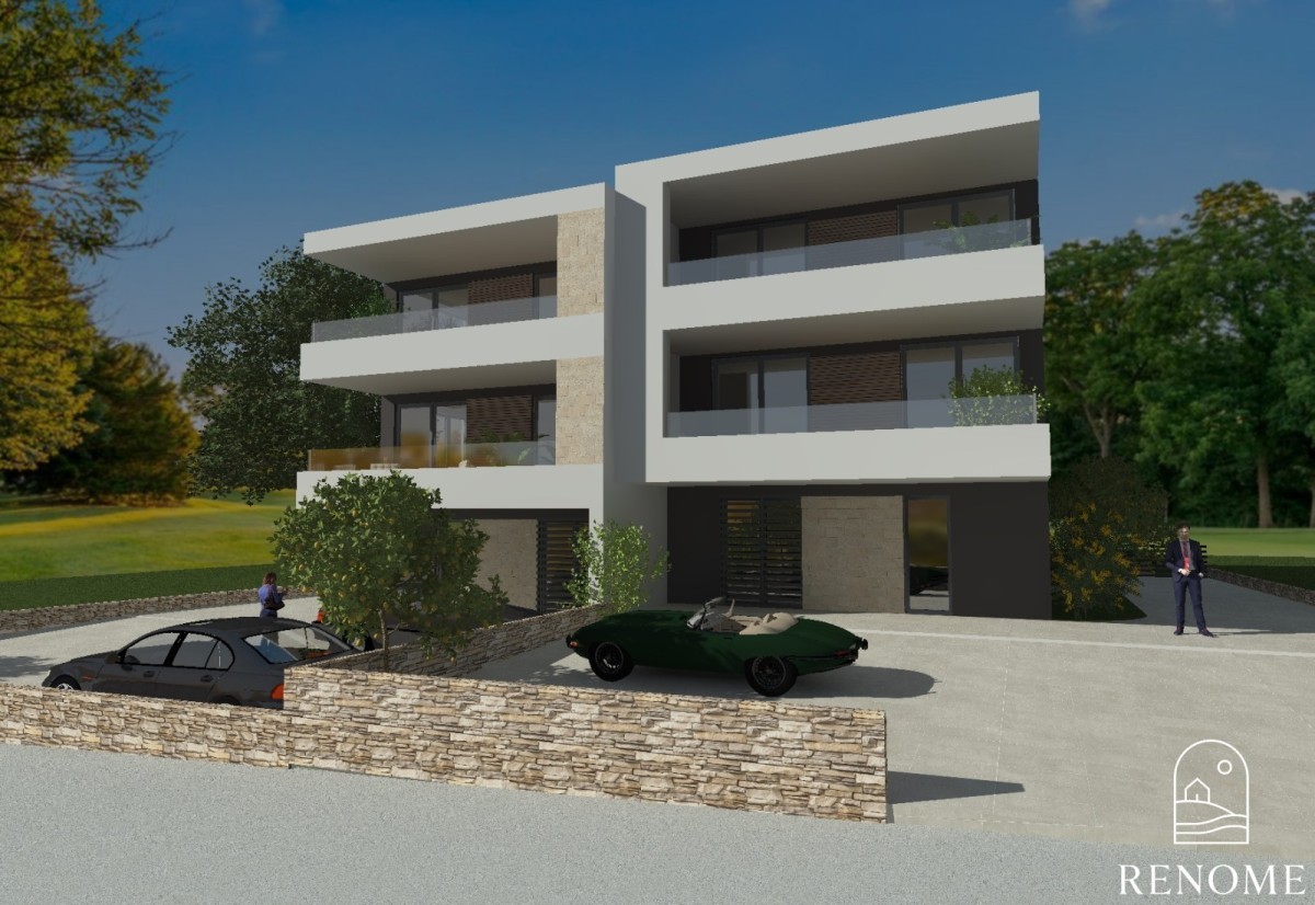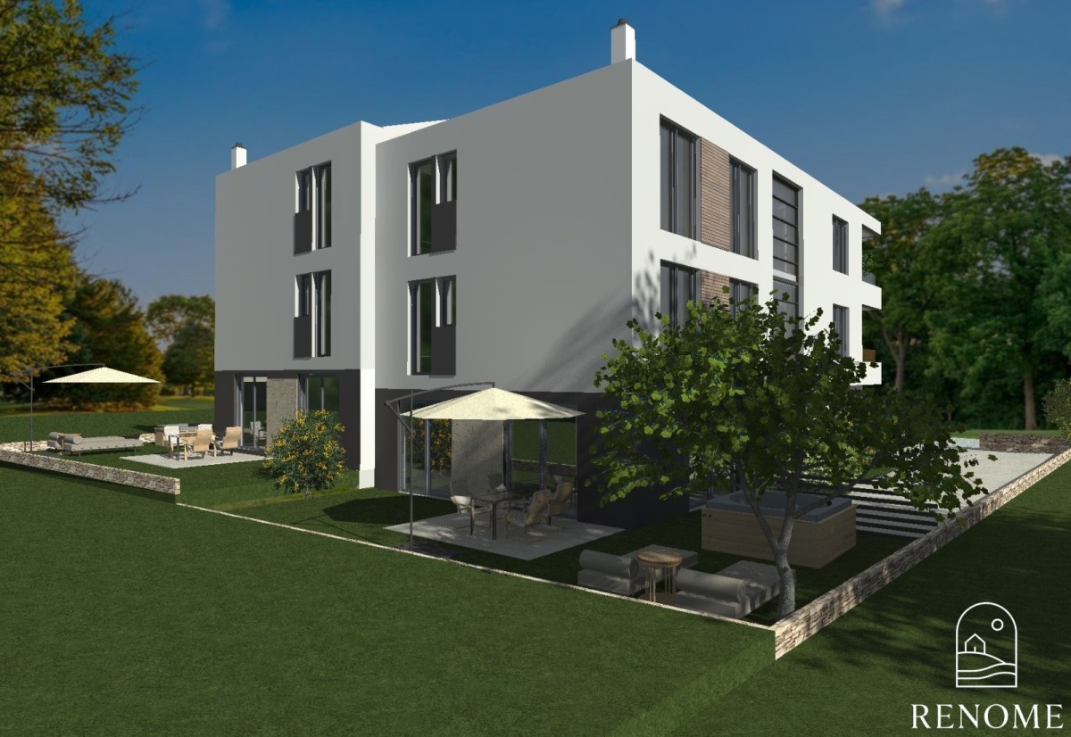 An apartment with an area of 98.23 m2 is for sale on the 1st floor of a smaller building with 4 apartments.