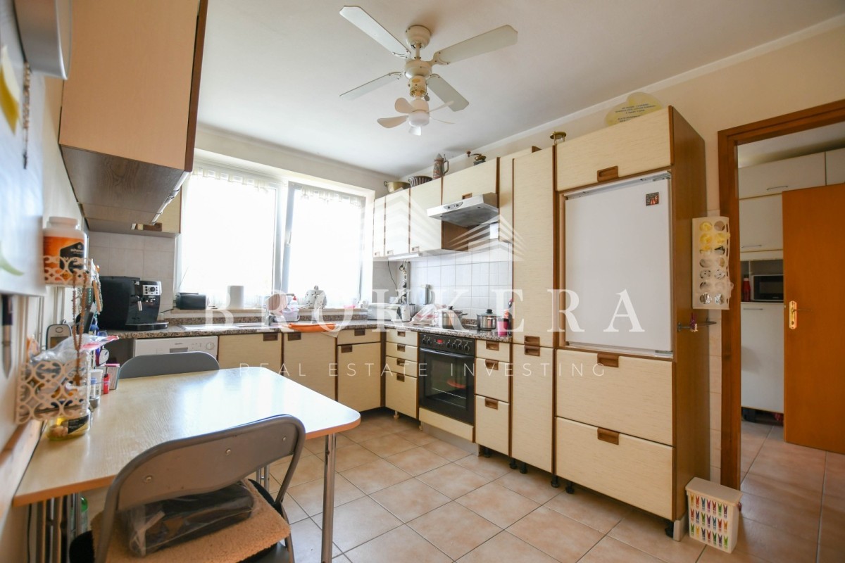 In the basement, part of the cellar is used as a small studio apartment, and on the upper floor, the space has been converted into a cozy open-plan apartment with a large terrace.