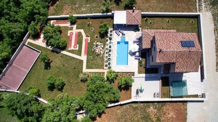 The house's garden is 2000 m2. The property boasts a versatile court that can accommodate soccer, basketball, and volleyball, a mini golf course and a children's playground. It is ideal for those seeking tranquility and seclusion without compromising access to nearby facilities.