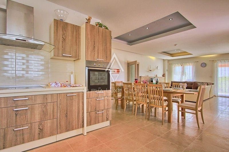 The villa has a living area of 294 m2 and a plot space of 2000 m2 distributed on the basement, ground floor, and upper floor. The house's basement has a multifunctional room with fitness equipment, a pantry, and a boiler room.