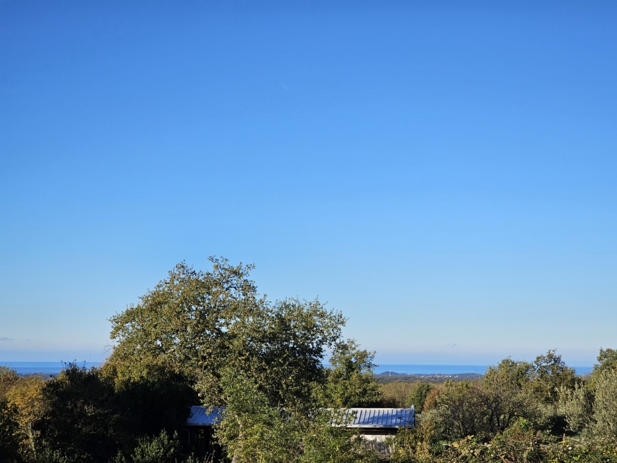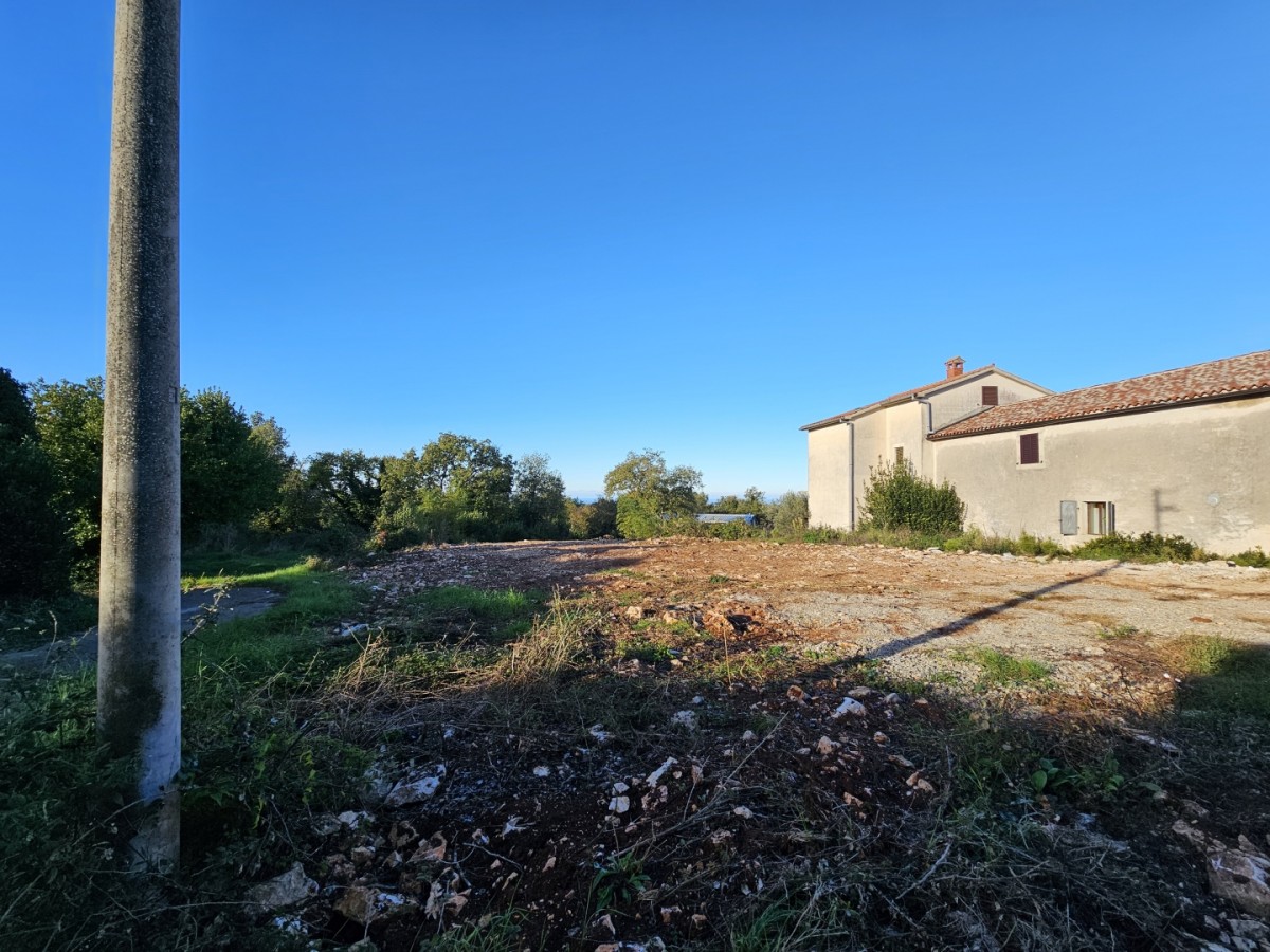 Sveti Lovreč - in a beautiful, quiet Istrian village, surrounded by nature with an open sea view, a building plot of 900 m2 is for sale with a building permit and paid utilities for a family house of 168 m2 net on three floors, basement, ground floor and 1st floor.