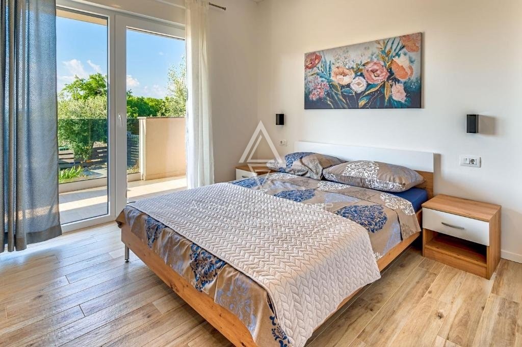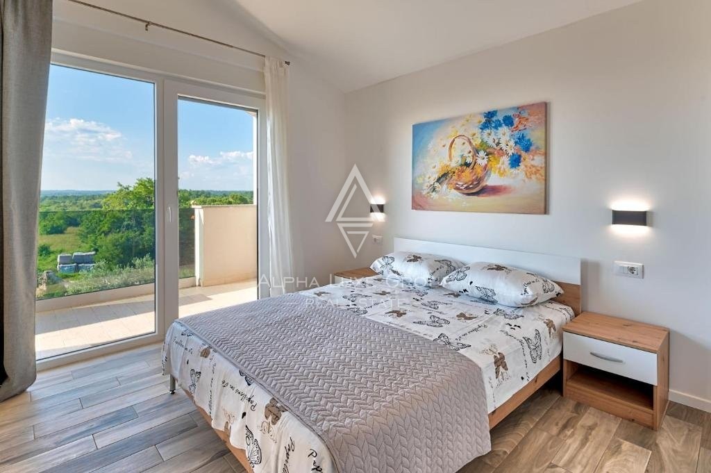 Discover the perfect blend of leisure and elegance with this brand-new villa, ideally situated in the serene outskirts of Marčana, a delightful town midway to the scenic Raška Bay. Offering tranquility on the fringe of the community, this property is a haven of peace, ensuring uninterrupted enjoyment of Istria's natural beauty, just 20 km from Pula and a mere 10 km to the azure coast.
