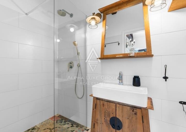 The first house, spanning 190 m², is an oasis of relaxation featuring a cozy living room, a fully equipped kitchen, and a dining area. It houses four bedrooms, each complete with a private bathroom.